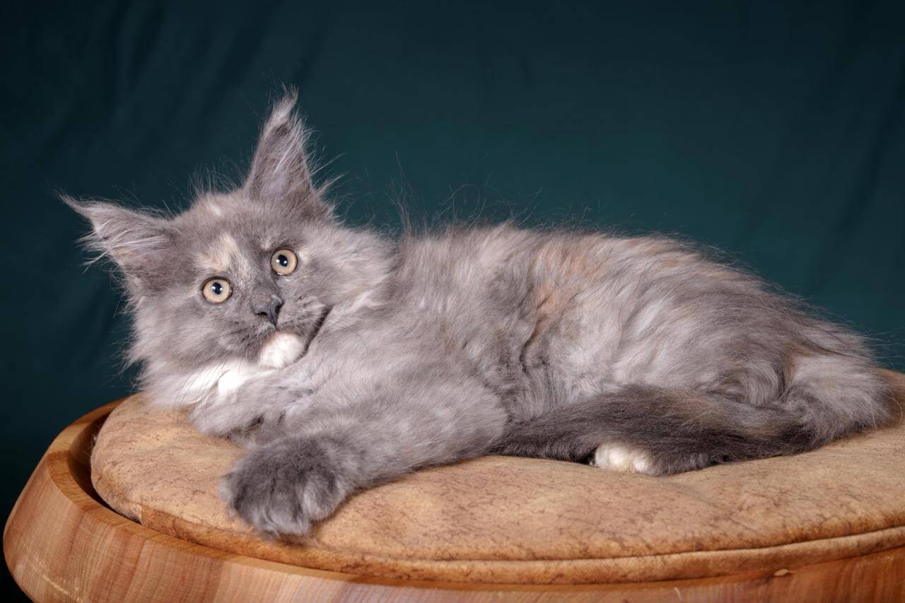 Adelina’s blue tortie silver coat glimmers as she stretches lazily by the window, her loving yellow gaze following you with pure devotion. She’s as playful as a sunbeam, forever chasing feather toys, but happiest when curled in your lap, purring warmth and trust into your fingertips. Adelina’s classic Maine Coon confidence shines in every stride—soft, steady, and always seeking affection.