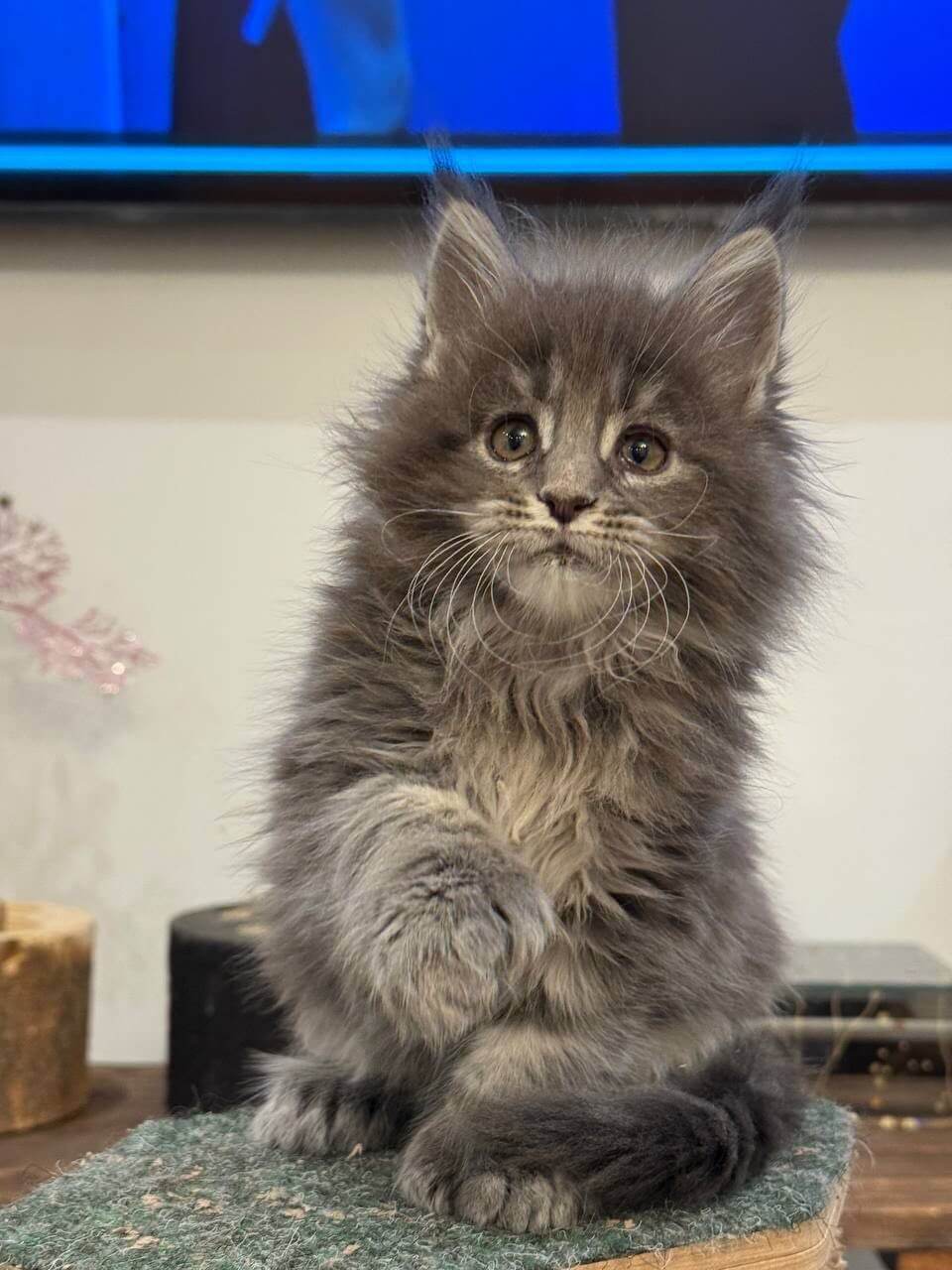 Every morning, Alisa greets you at the door on oversized, tufted poly paws, her tail arching in graceful welcome. She’s interactive and clever, often carrying toys in her mouth and orchestrating hide-and-seek adventures with surprising dexterity. At night, she curls around your feet with a steady loyalty unique to Maine Coon POLY kittens—always close, always attuned to your mood, sure to be your constant companion.