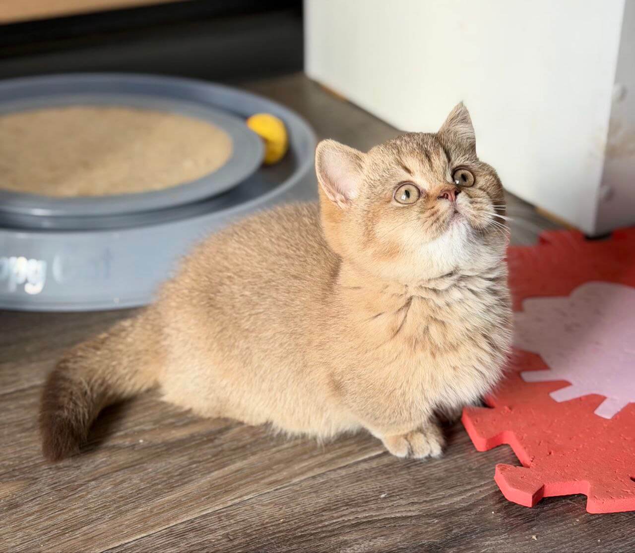 Alya’s playful spirit and curiosity make her the perfect cuddle companion for quiet nights or playful mornings. Whether she’s chasing after a toy or curling into your lap, she’ll quickly become the heart of your home. Her unique champion bloodlines shine through in both her charming looks and affectionate temperament.