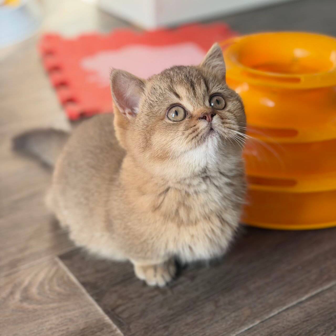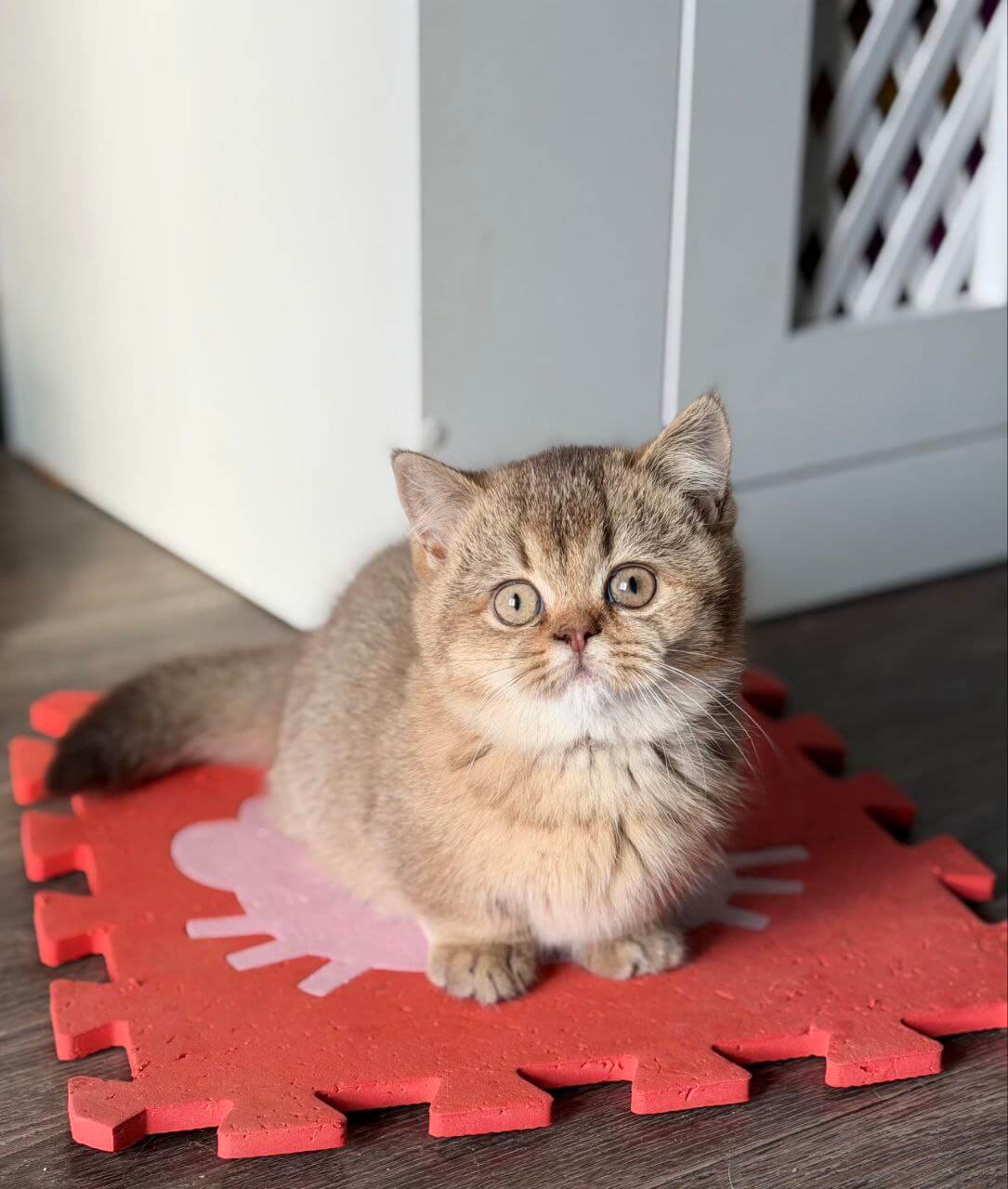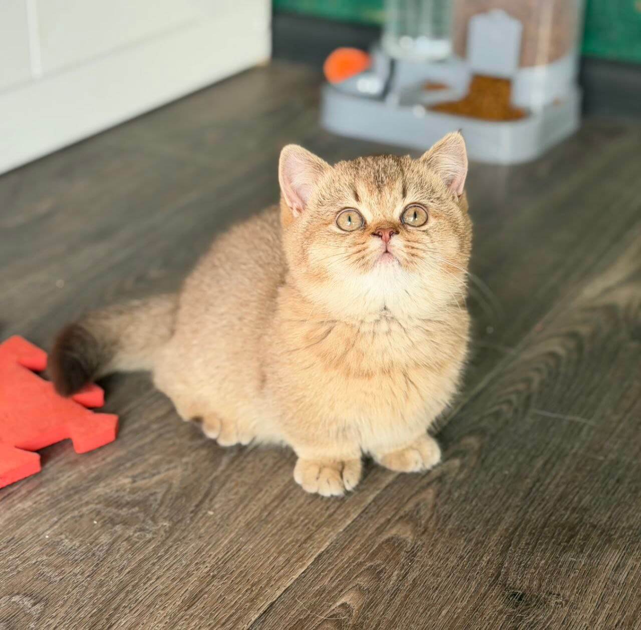 Meet Alya, the chocolate golden shaded Munchkin girl who will melt your heart at first glance. With her enchanting yellow eyes and plush velvety coat, Alya is a bundle of sunshine ready to bring warmth and joy into your life. She adores gentle touches and thrives in loving arms—her gentle purrs are as sweet as her delicate, plush paws.