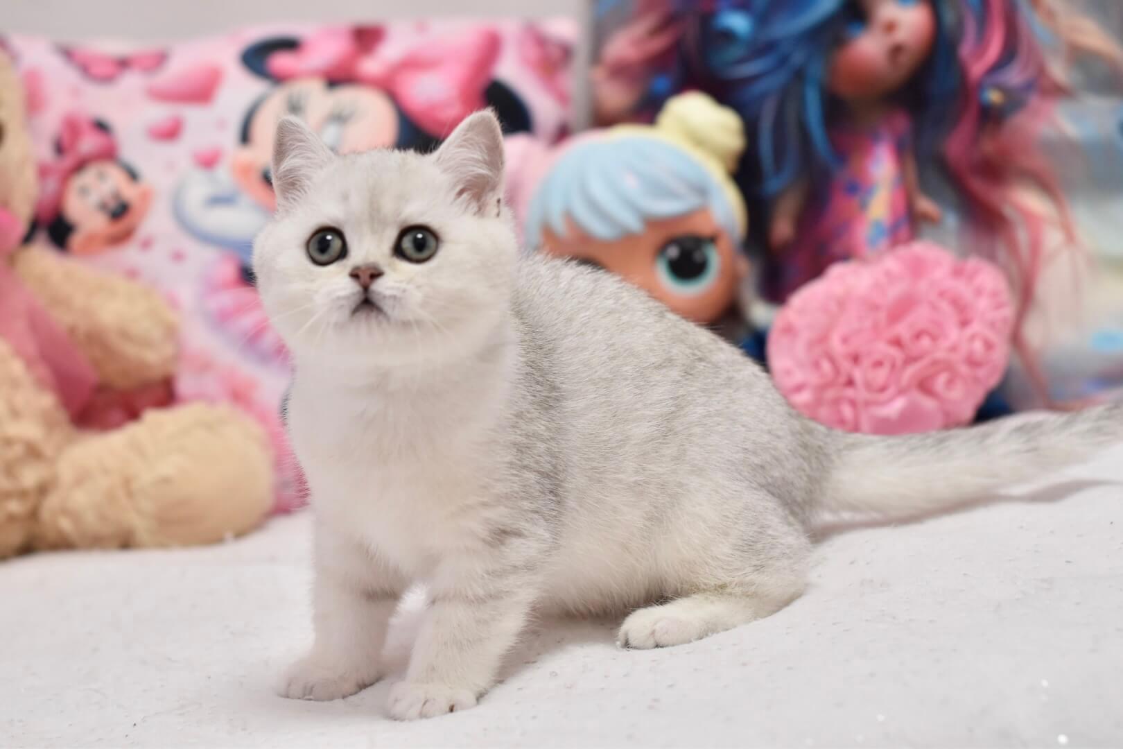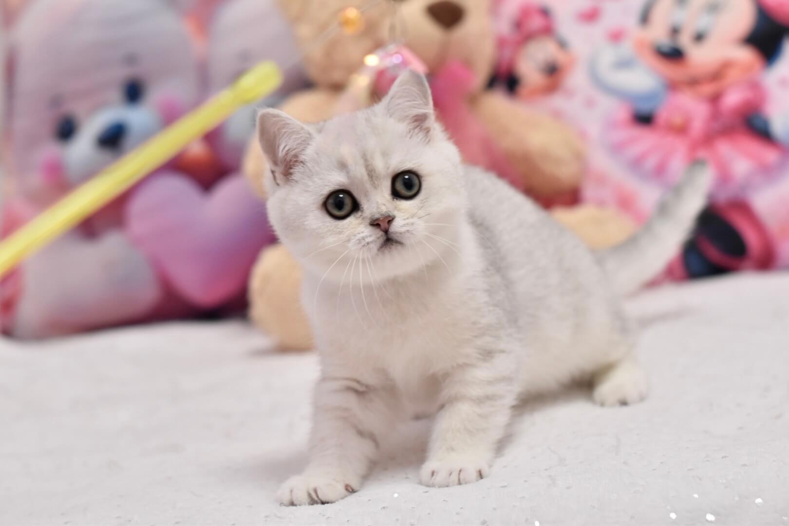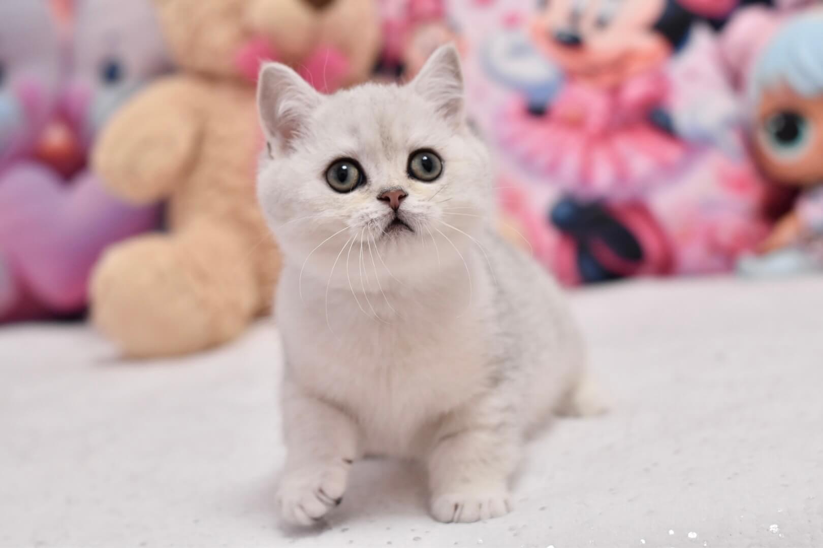 Silky-soft and remarkably plush, Andy’s coat is a velvet cloud of Black Silver Shaded British Shorthair perfection. Each stroke reveals subtle silver highlights that shimmer in the light, inviting your hand to linger. His round, emerald-green eyes are bright but calming, carrying the gentle dignity unique to British Shorthairs and inviting quiet companionship.