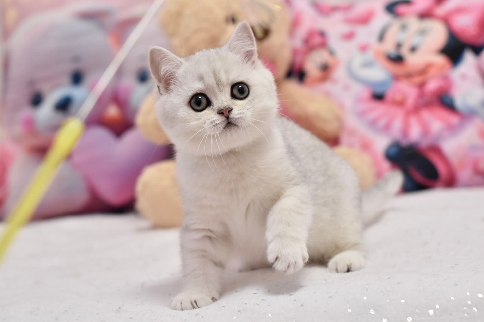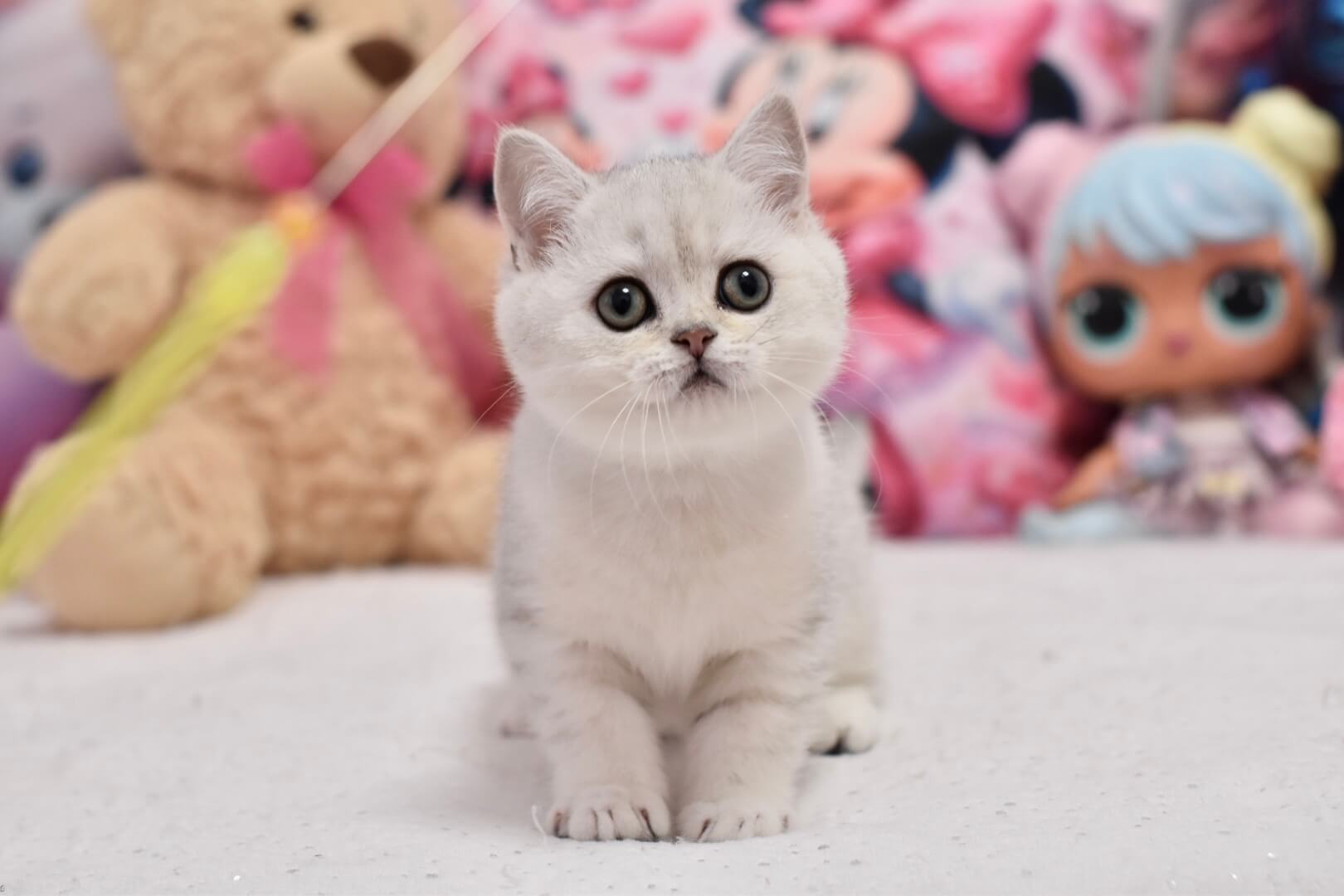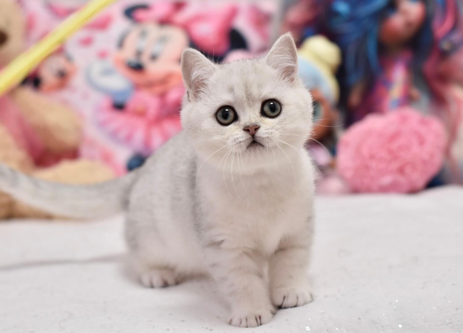 Silky-soft and remarkably plush, Andy’s coat is a velvet cloud of Black Silver Shaded British Shorthair perfection. Each stroke reveals subtle silver highlights that shimmer in the light, inviting your hand to linger. His round, emerald-green eyes are bright but calming, carrying the gentle dignity unique to British Shorthairs and inviting quiet companionship.
