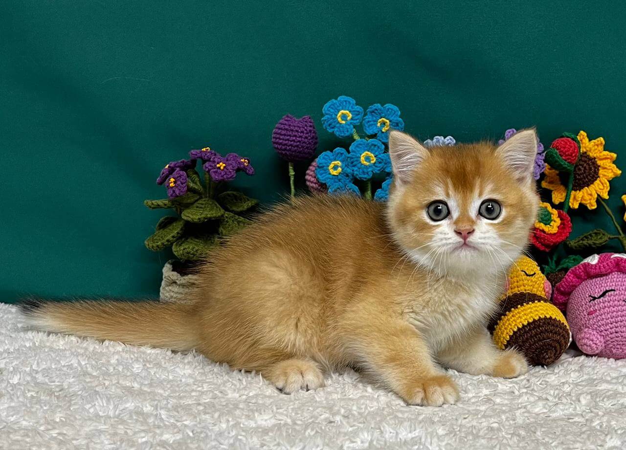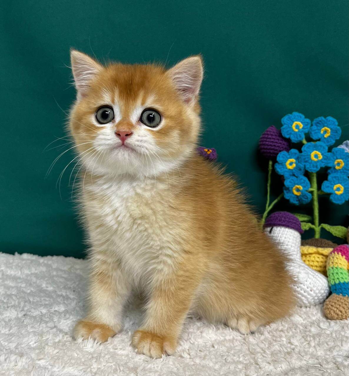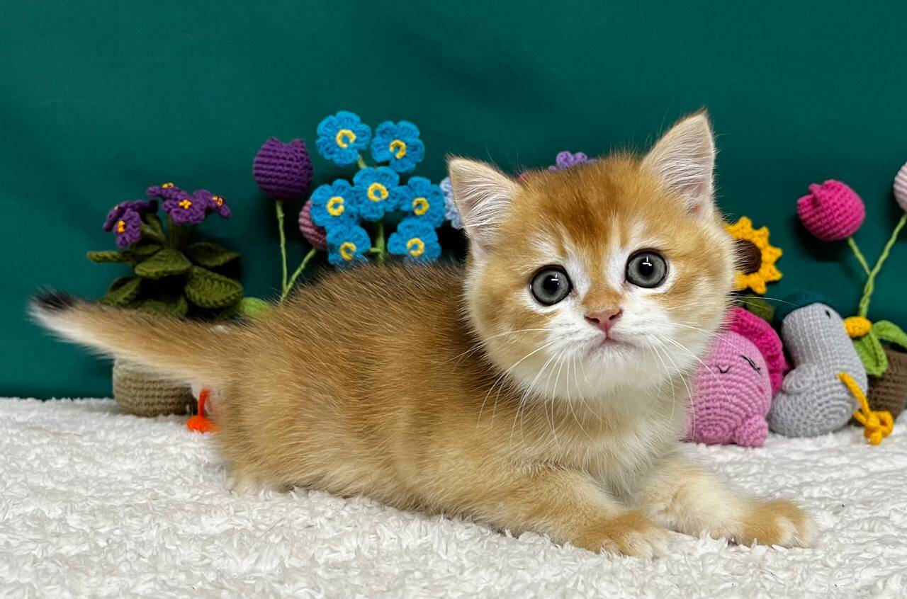 Meet Apollon, a truly enchanting Scottish Straight kitten whose emerald-green eyes light up any room with wonder and mischief. From the moment he pads into your life, his gentle touch and soft purrs promise warmth and heartfelt companionship — a loving friend ready to nestle close and melt away your worries.