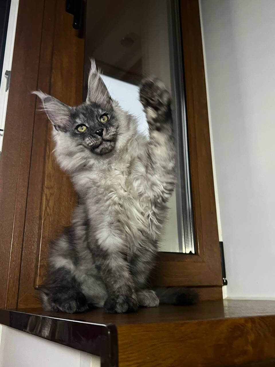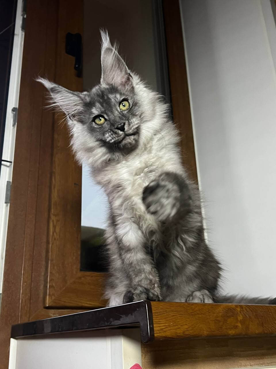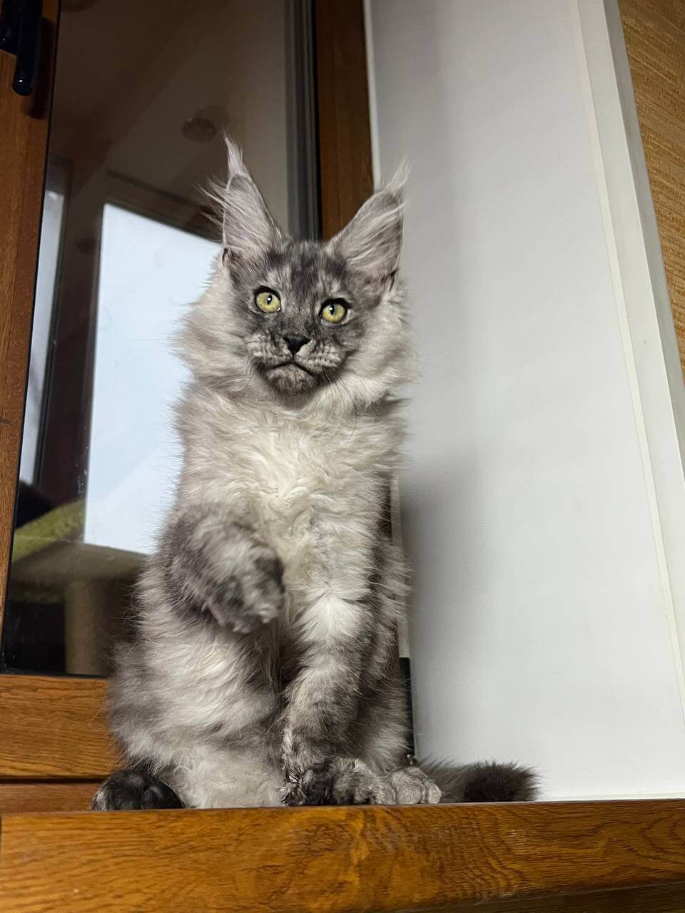 Meet Aragon, your future gentle giant and soulmate—a stunning black silver Maine Coon boy with soulful yellow eyes that seem to understand every wish and secret. The moment you gaze into his shimmering gaze, you’ll feel his promise of unconditional love and playful companionship.