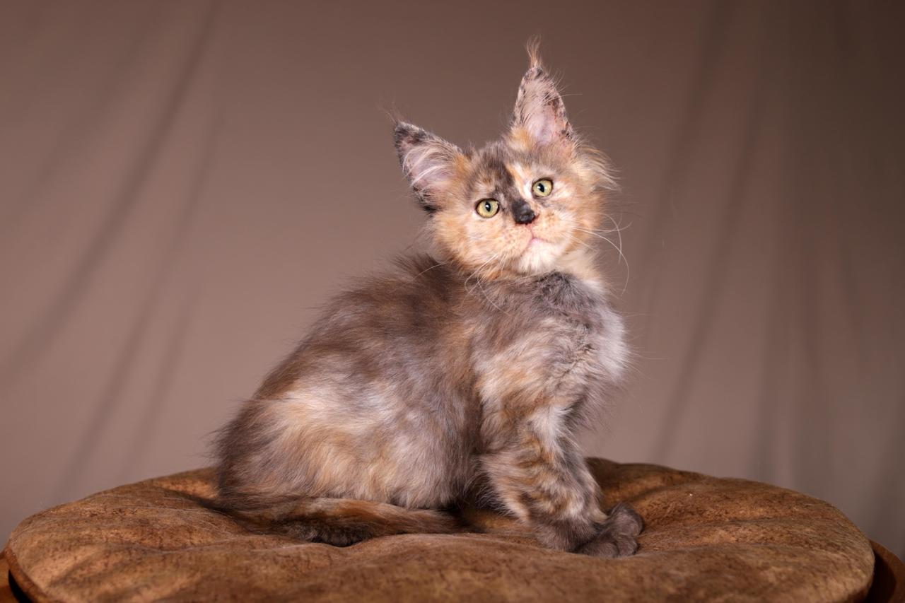 Meet Ariel, our enchanting Maine Coon girl destined to steal your heart from the very first purr. With her luxurious black tortie tabby spotted coat and soulful yellow eyes, Ariel promises every cuddle is a warm embrace and every glance melts worries away.