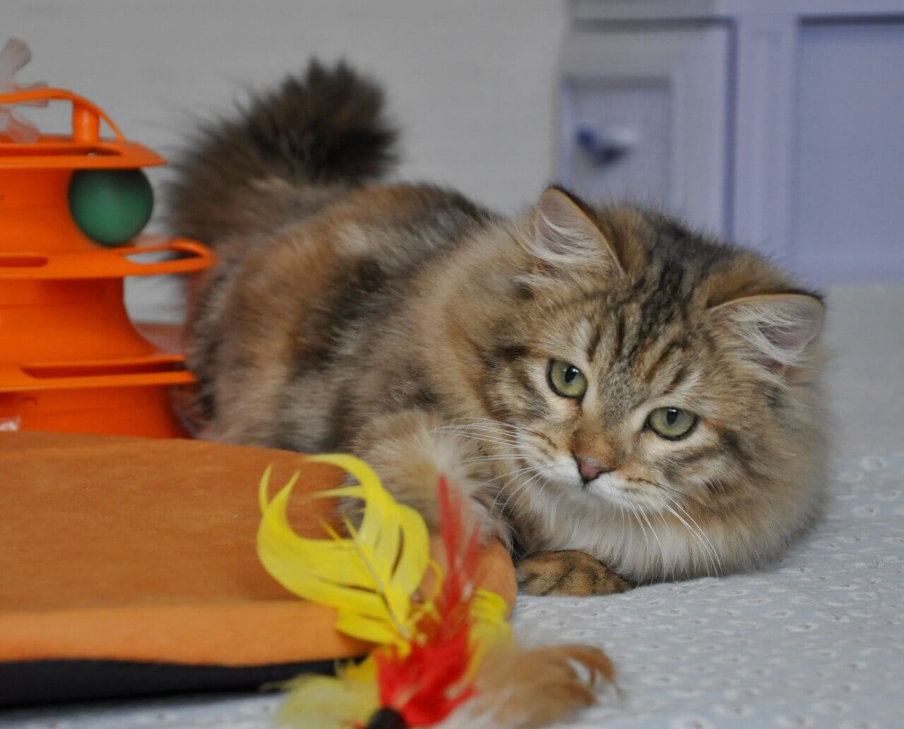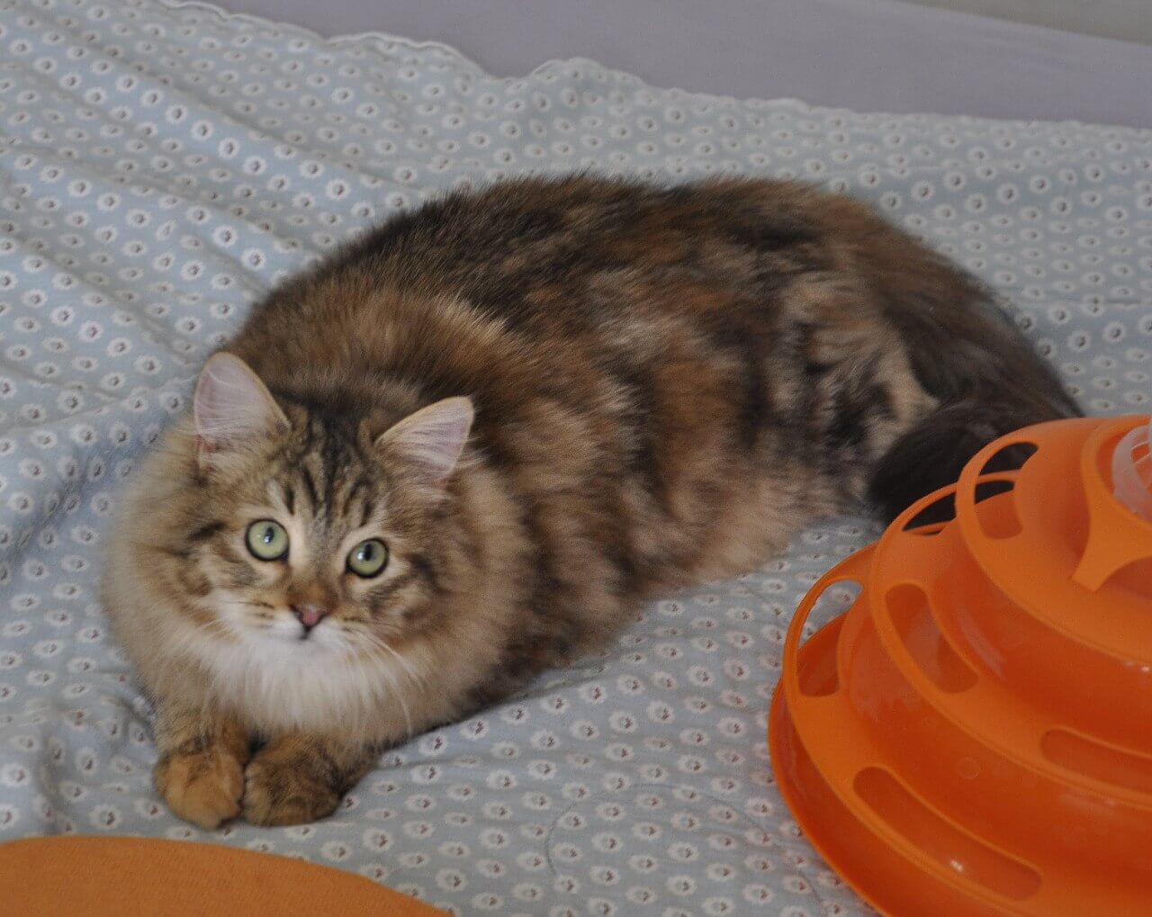 Arina isn’t just beautiful—she’s endlessly curious, delightfully playful, and melts into loving cuddles at every chance. Her expressive gaze and unique tortie patterns turn every glance into a loving conversation. Arina adores soft laps, playful moments, and will happily twirl around your fingers for affection.