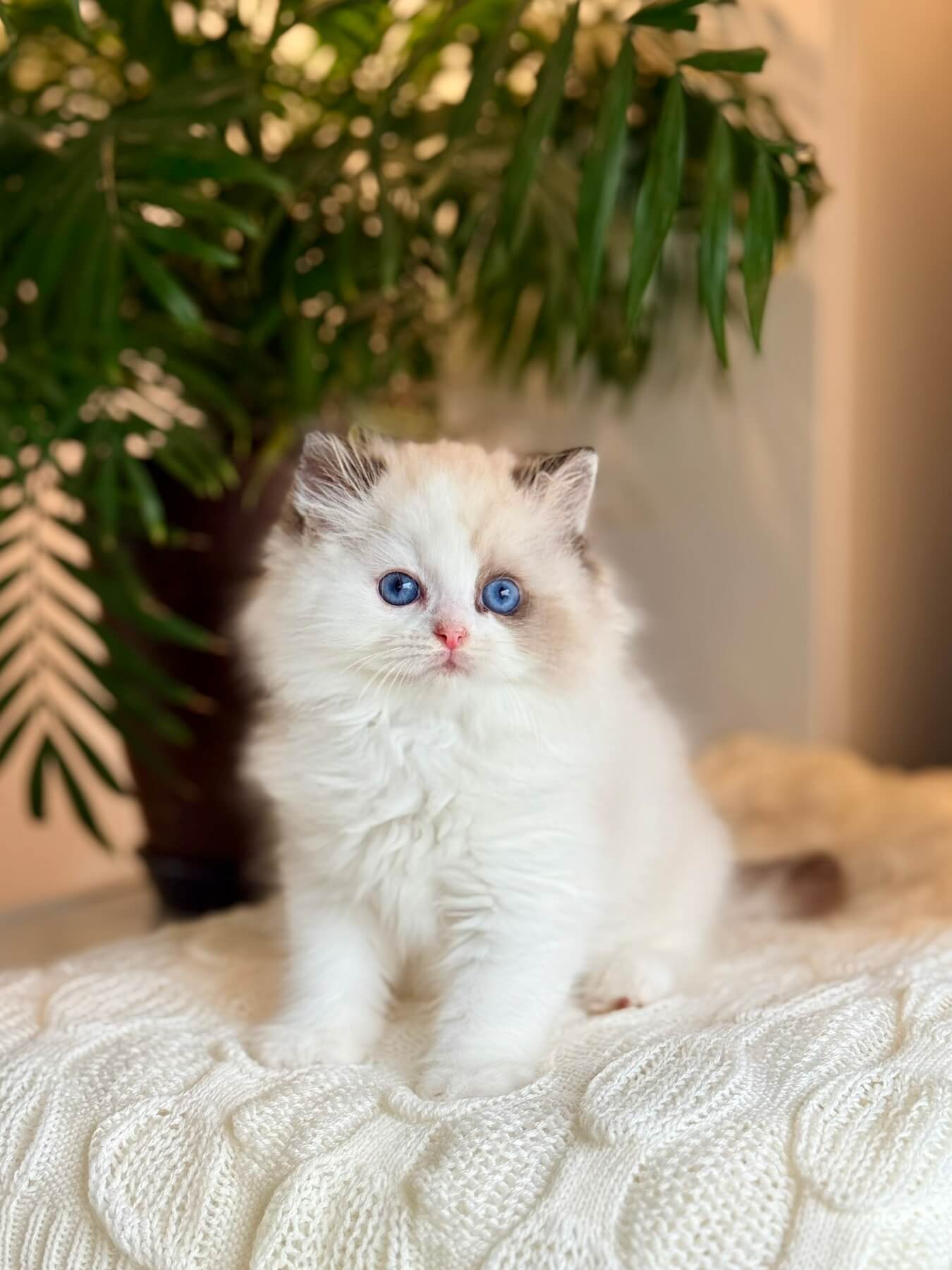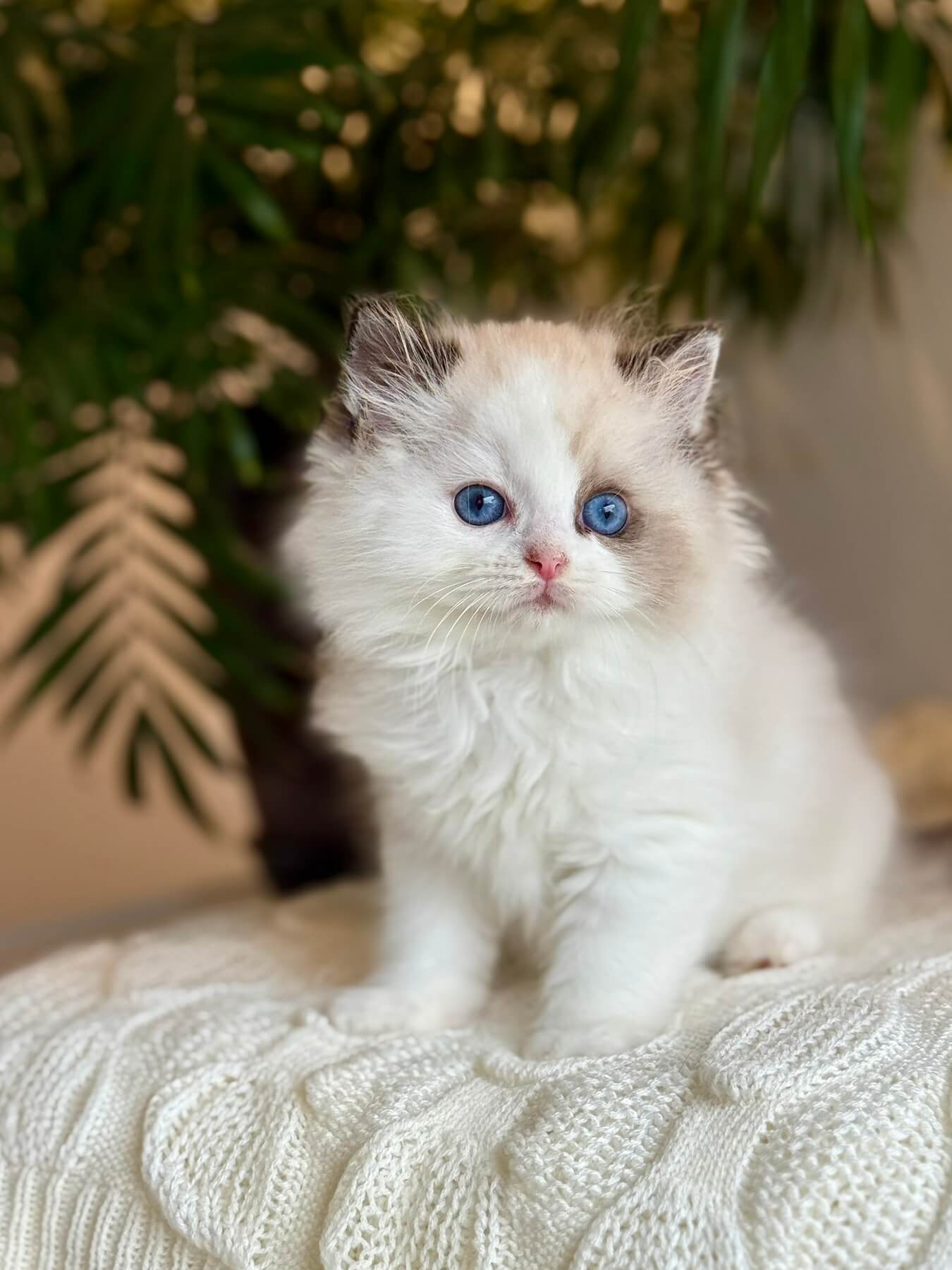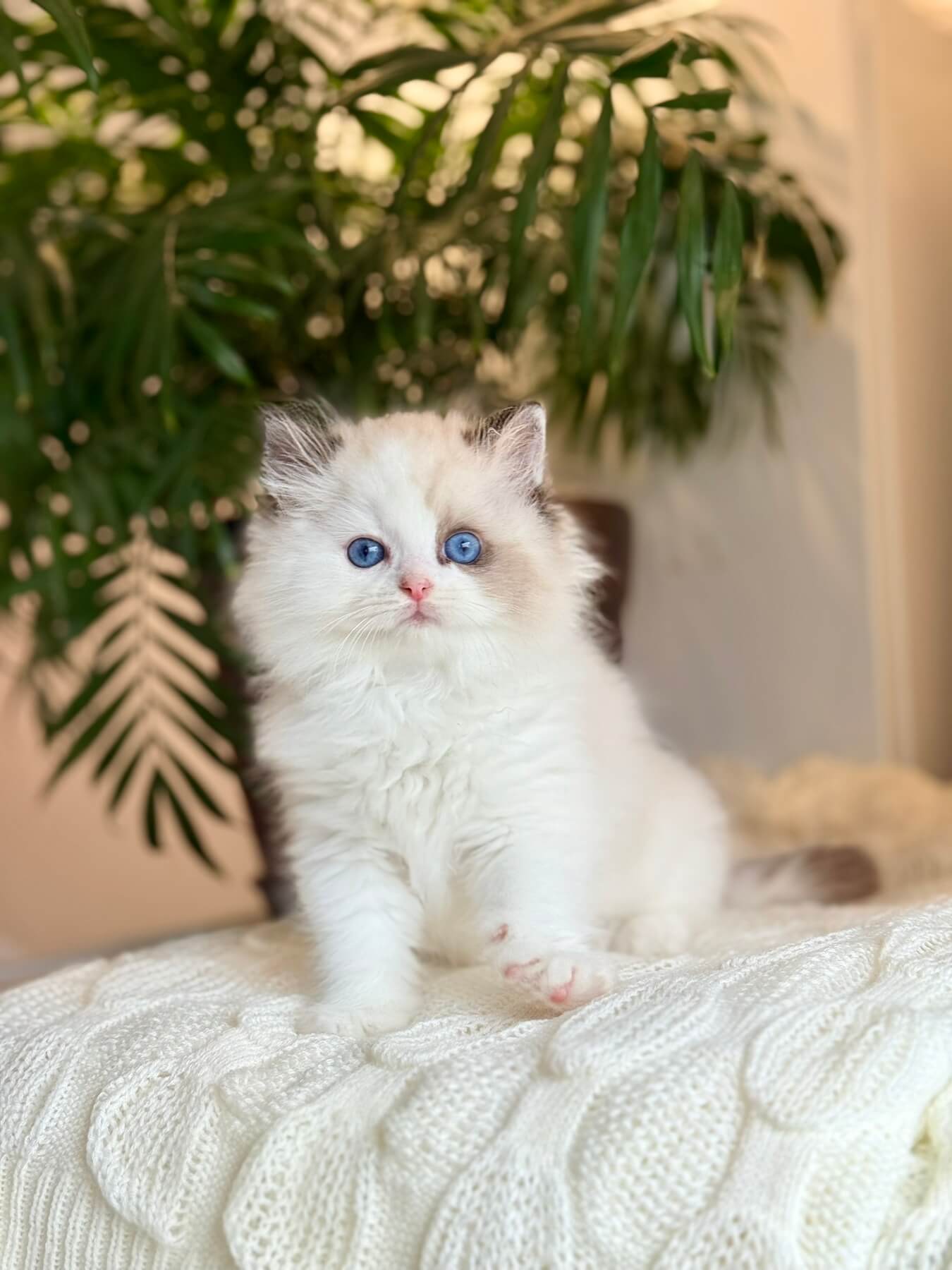 Meet Arnold, a charming male Ragdoll kitten with striking seal bicolor fur and captivating blue eyes. Born on August 4, 2025, Arnold is a show-quality kitten descending from champion bloodlines. With a conditional pedigree and registered status, he will be available to join his new family starting December 4, 2025. Arnold can be reserved through our website with a $500 non-refundable deposit. He is conveniently located in Europe but can be picked up in Wood Dale, USA, with delivery options available from Chicago to other states. Arnold comes with a wealth of support, including 7 days a week assistance for all his needs. Whether you choose to spay or neuter him as a pet or decide to explore breeding rights, Arnold is ready to bring joy and companionship to your home. Follow us on Instagram to see Arnold and his friends in their playful moments!