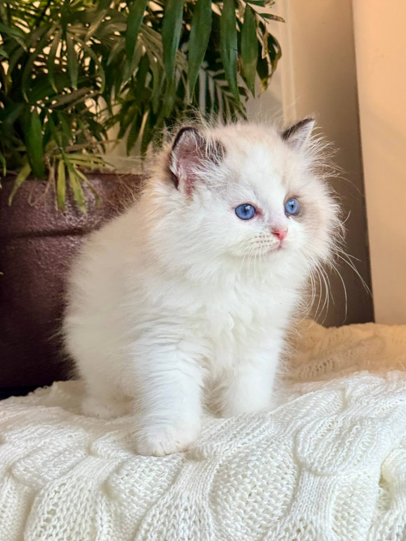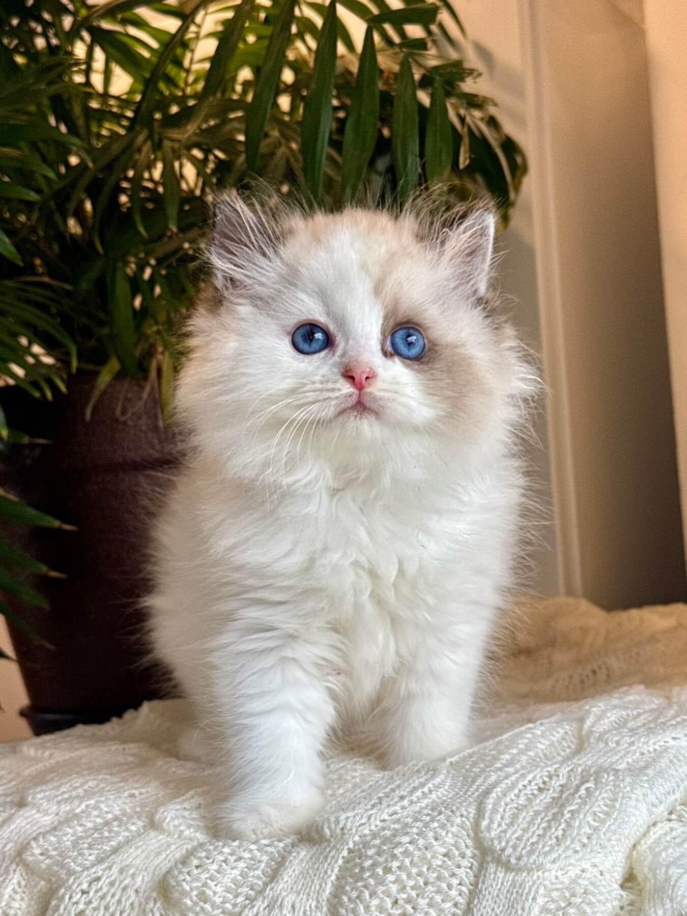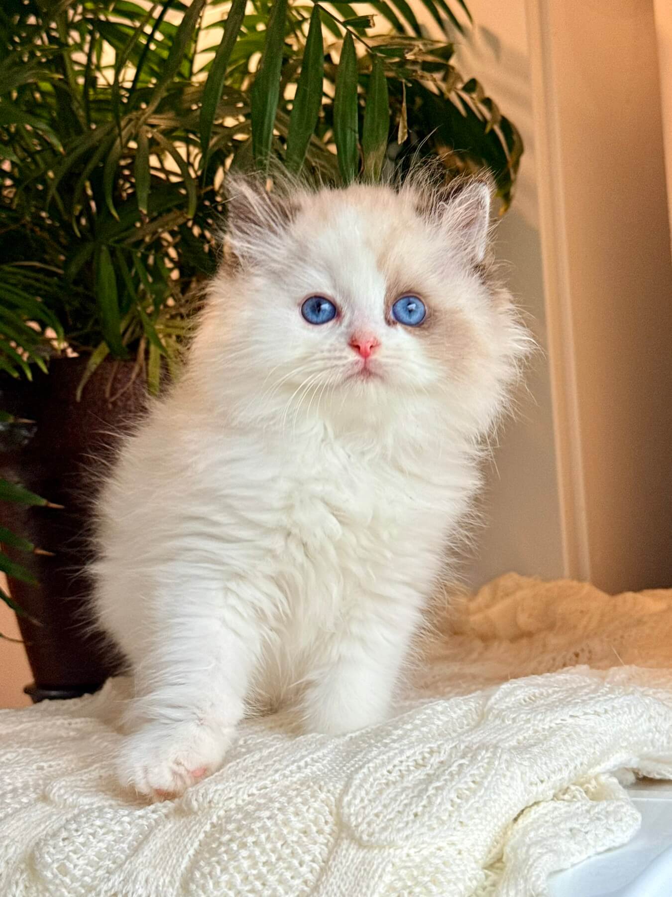 Meet Arnold, a charming male Ragdoll kitten with striking seal bicolor fur and captivating blue eyes. Born on August 4, 2025, Arnold is a show-quality kitten descending from champion bloodlines. With a conditional pedigree and registered status, he will be available to join his new family starting December 4, 2025. Arnold can be reserved through our website with a $500 non-refundable deposit. He is conveniently located in Europe but can be picked up in Wood Dale, USA, with delivery options available from Chicago to other states. Arnold comes with a wealth of support, including 7 days a week assistance for all his needs. Whether you choose to spay or neuter him as a pet or decide to explore breeding rights, Arnold is ready to bring joy and companionship to your home. Follow us on Instagram to see Arnold and his friends in their playful moments!