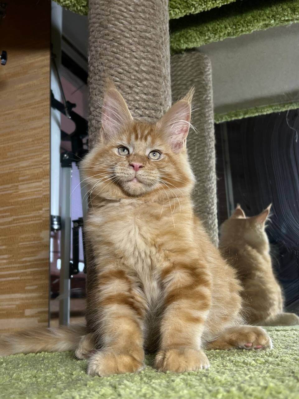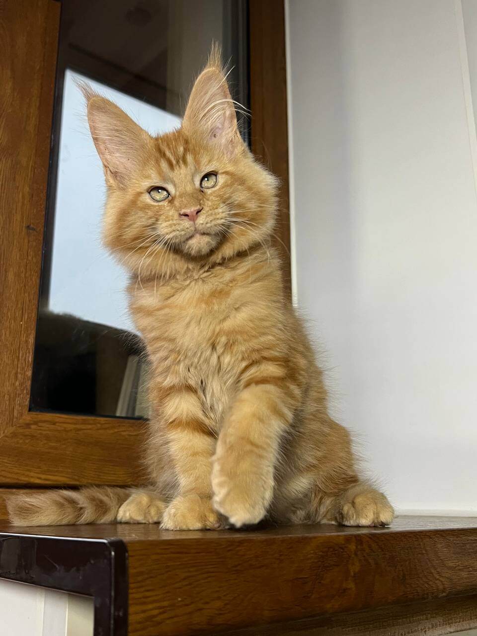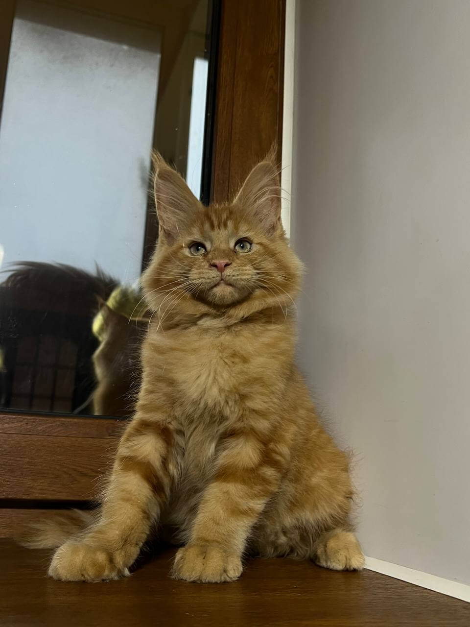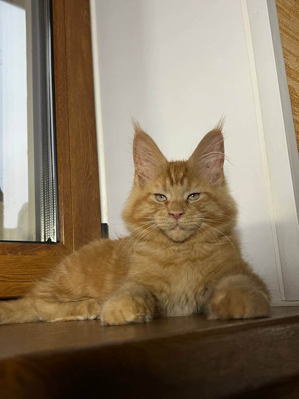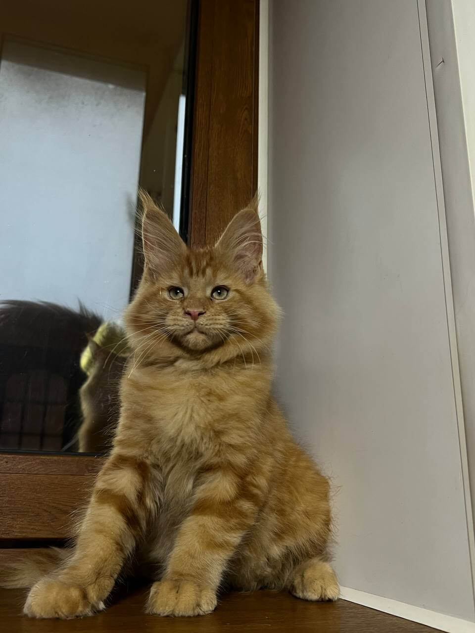 Step into the gentle warmth of Aron’s world—a breathtaking red Maine Coon boy whose soft yellow eyes glow with curiosity and quiet affection. From his plush, silky coat to his elegantly tufted ears, Aron is the very picture of comfort and love, ready to charm his way into your family’s heart.
