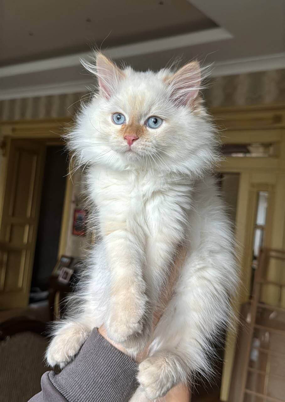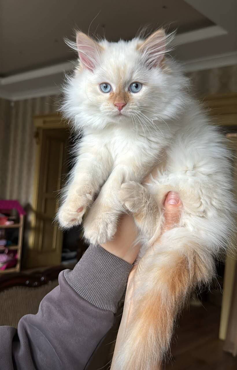 With his soft, creamy fur brushed by delicate ginger highlights and ocean-blue eyes full of wonder, Artist is more than stunning to look at—he’s a tender soul who adores gentle cuddles and settles in your arms with a soothing purr. Curious and playful, he greets each day as a new adventure, following you from room to room and offering affection with the sweetest little nuzzles.