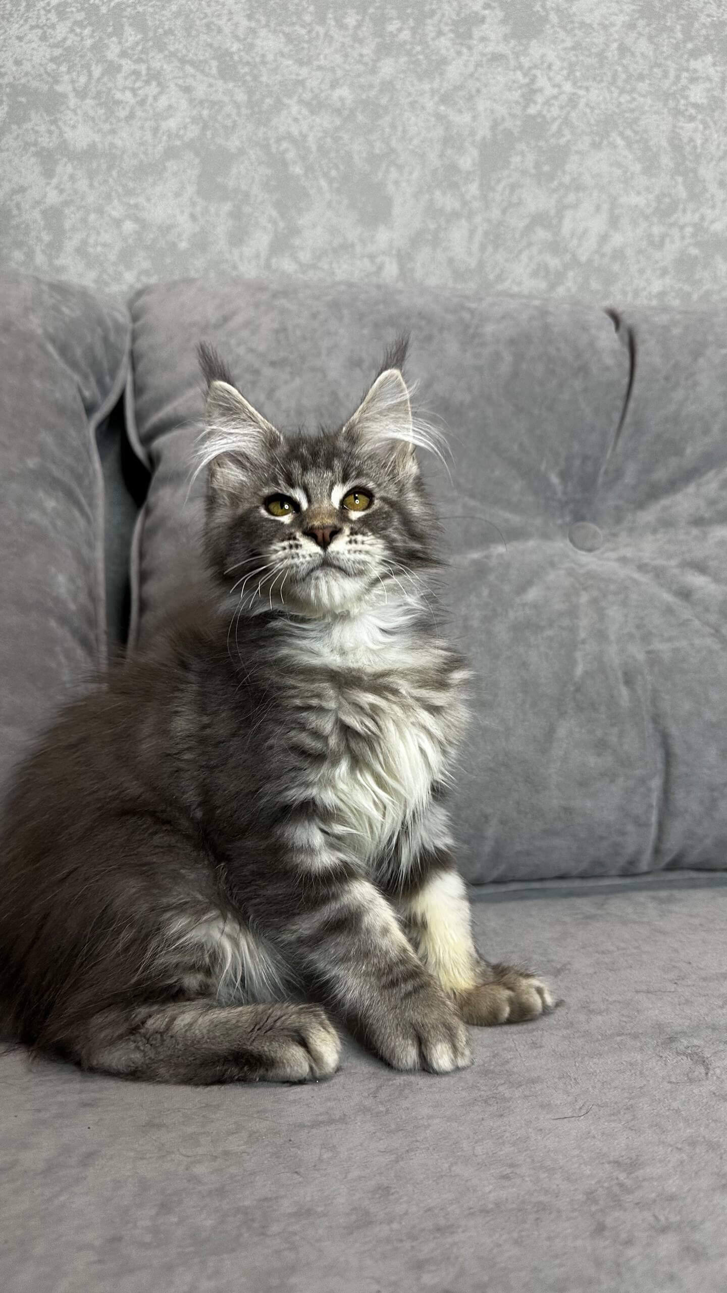 Ash isn’t just beautiful—his blue silver tabby coat ripples with unique, blotched swirls, and his playful, affectionate spirit means he’s always close by, purring sweetly or reaching out with a gentle paw. Both curious and calm, he’s the perfect blend of mischievous and mellow—a true show-stopper, inside and out.