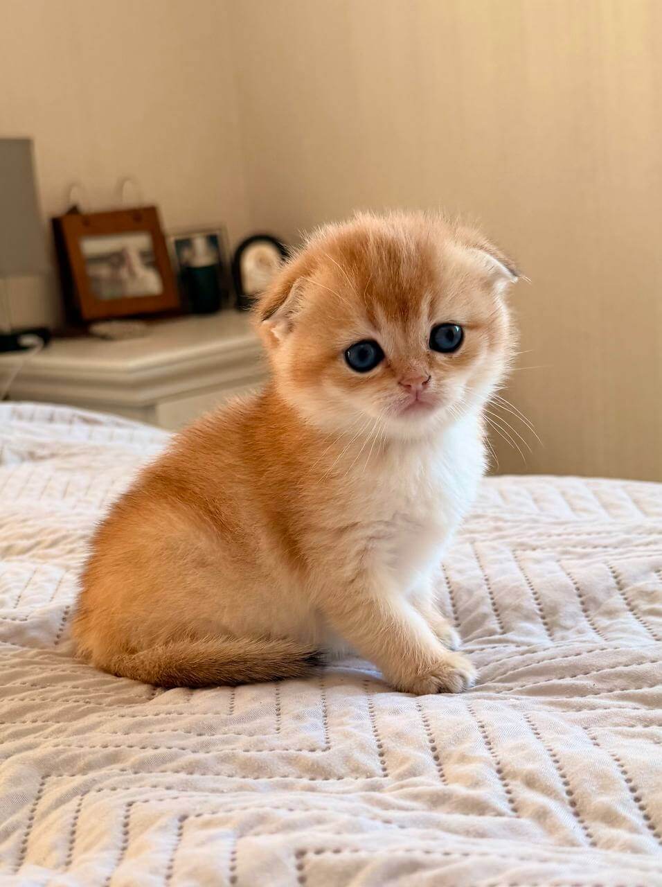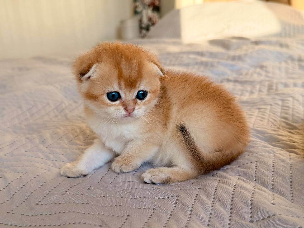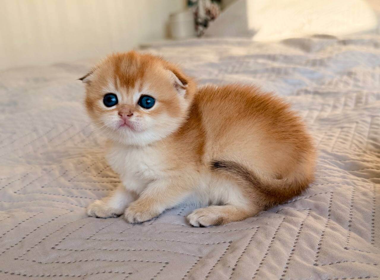 Unlike most kittens, Bailley doesn’t just follow you from room to room—he’ll curl up beside you with his quiet, folded-ear curiosity soothed by your nearness. He perches gently at your side, batting at your pages as you read or nuzzling into your palm as the day unwinds, his rumbling purr rising when you speak his name in the quiet house.