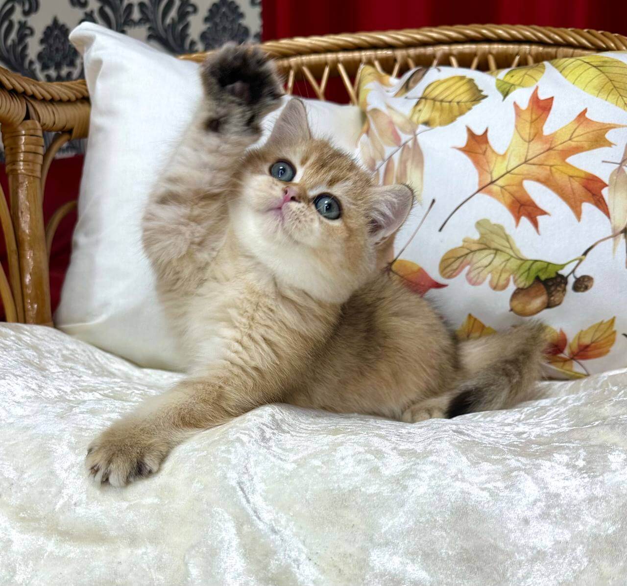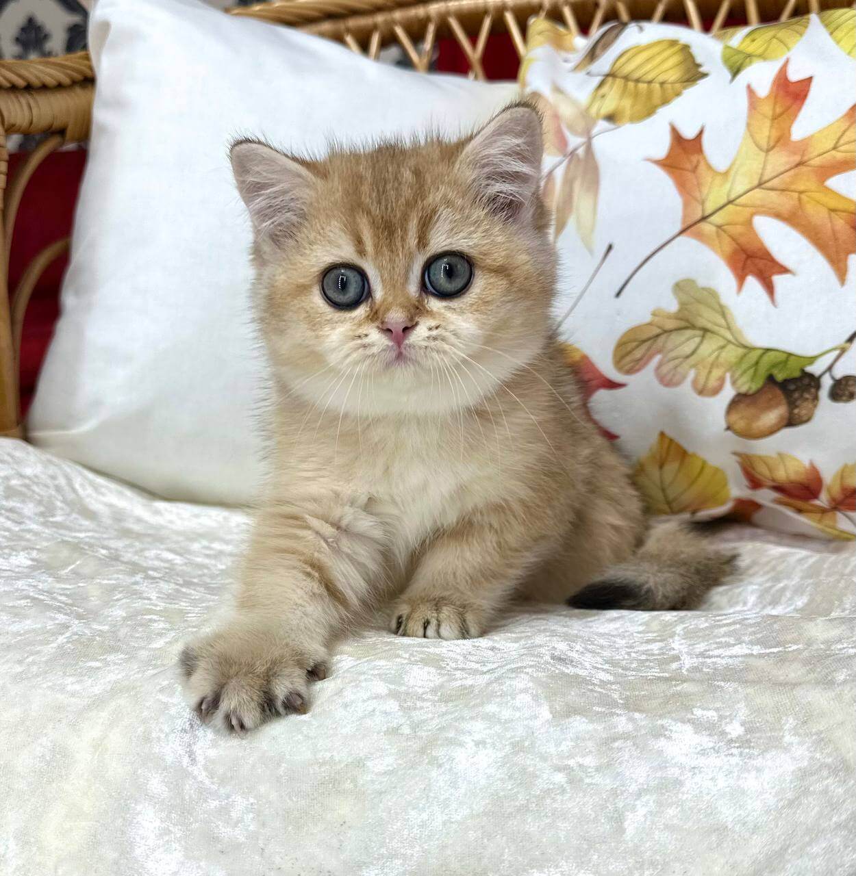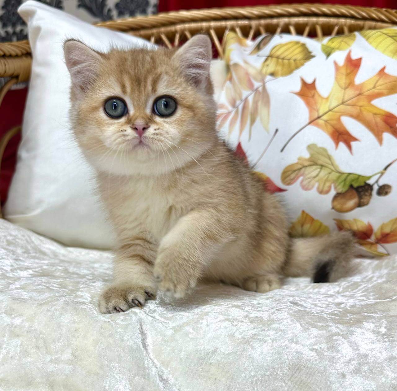 Meet Bantik, a British Shorthair treasure whose green eyes will capture your heart the moment you meet him. Imagine curling up with this golden-shaded boy as he softly purrs in your arms, offering a world of warmth, trust, and gentle affection.