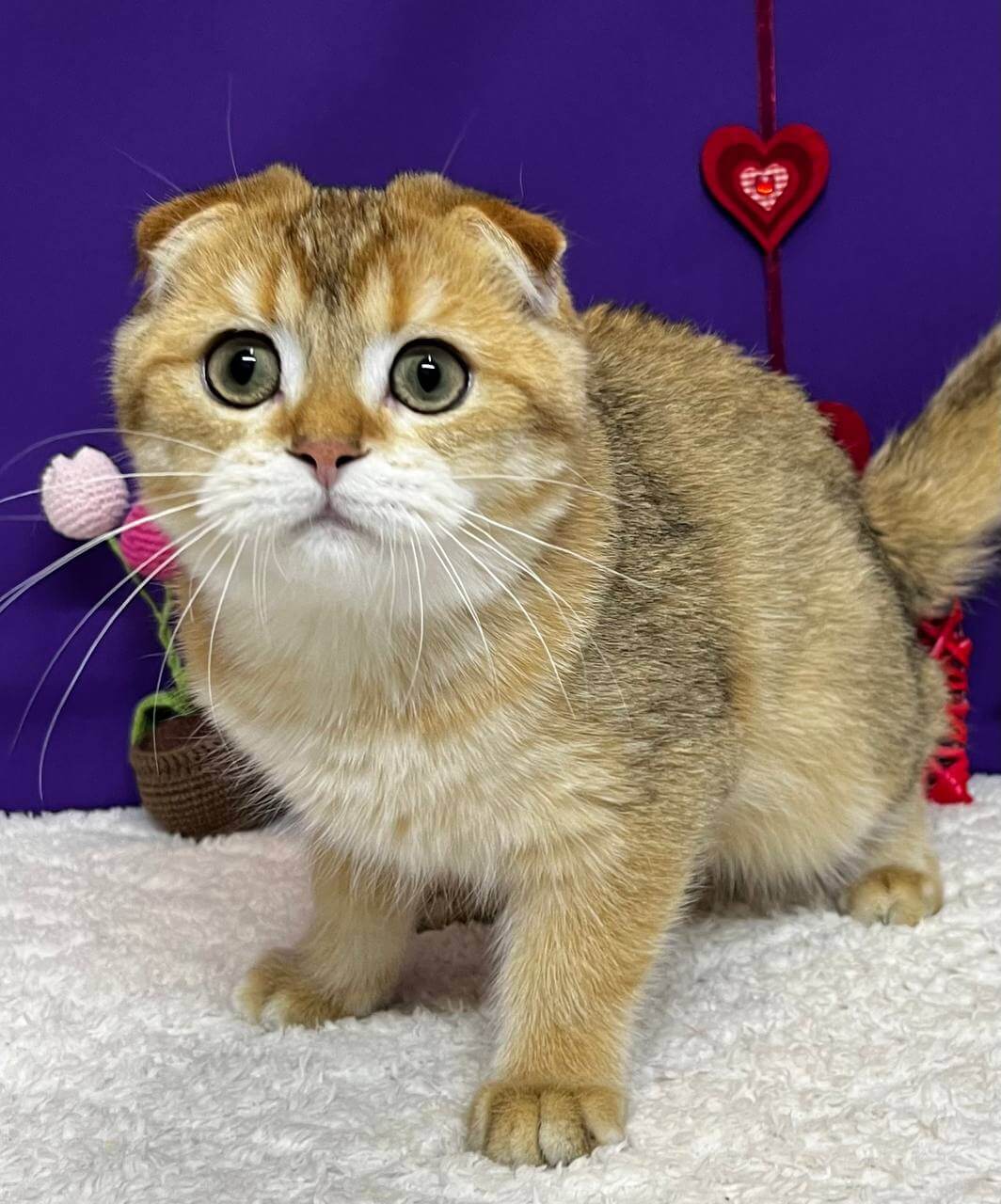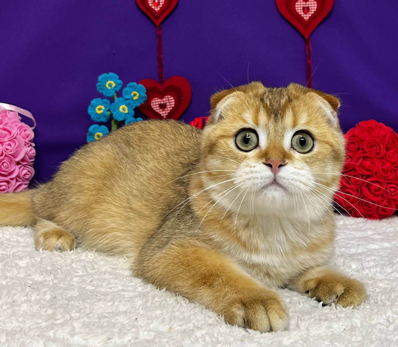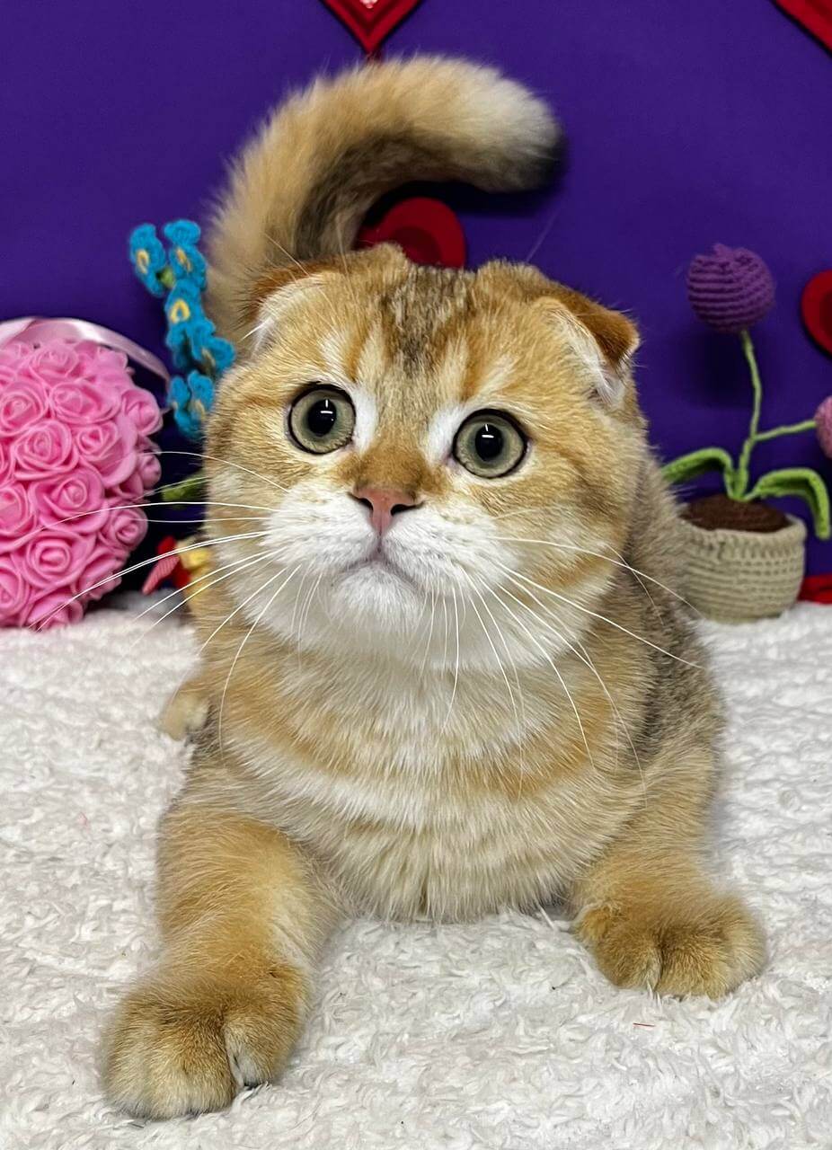 Meet Baron, a breathtaking Scottish Fold boy whose silky black golden shell coat gleams softly in the light, and whose enchanting green eyes promise endless affection. With just one gentle touch or a single sweet purr, Baron’s warmth will steal your heart.