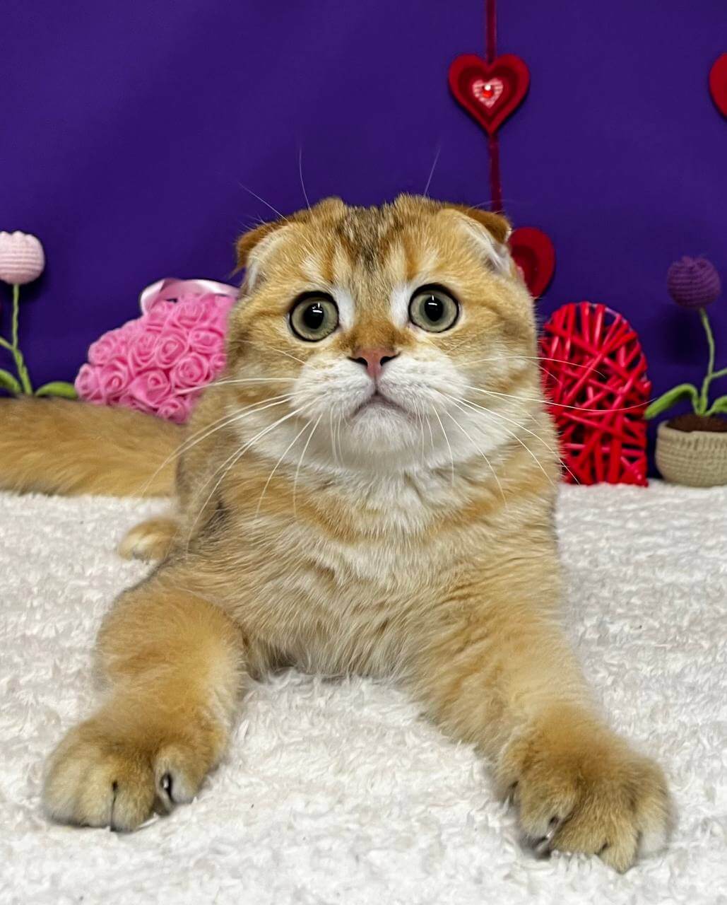 Baron is more than just a gorgeous face—he’s a gentle soul, curious and playful, always ready to nuzzle into your hand or snuggle at your side. His folded velvet ears, plush coat, and inquisitive gaze make him the perfect companion for cozy evenings and quiet moments of joy.