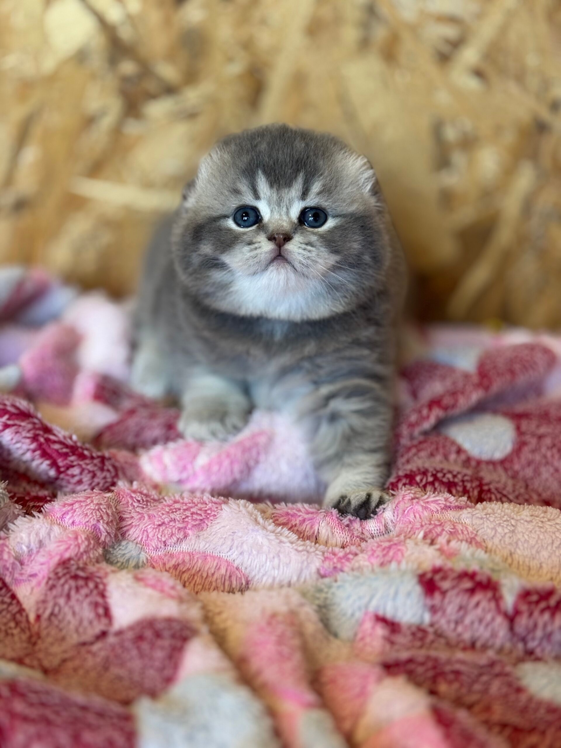 Meet Benjamin, a charming male Scottish Fold with striking blue tabby ticked fur and captivating yellow eyes. Born on September 8, 2025, Benjamin is a show-quality kitten with champion bloodlines, making him a perfect addition to any family. He is registered and will be neutered/spayed as a pet for a loving home. Benjamin will be ready to join his new family by January 8, 2026. Although based in Europe, he is available for reservation in the USA through our website, with pick-up in Wood Dale, IL. Delivery to other states is possible from Chicago. To reserve Benjamin, a non-refundable $500 deposit is required. We offer 7-day-a-week support for all your kitten care needs. Contact us to learn more about Benjamin and secure your new furry companion today!