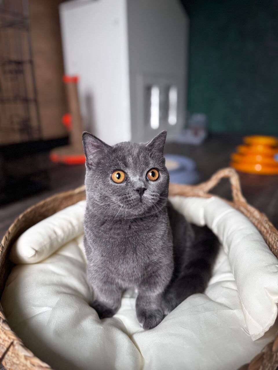 Meet Benny—the blue Munchkin boy with sun-bright yellow eyes and a heart full of gentle warmth. From the moment you pick him up, Benny’s soft purr and playful nuzzles create an instant bond that feels like home.