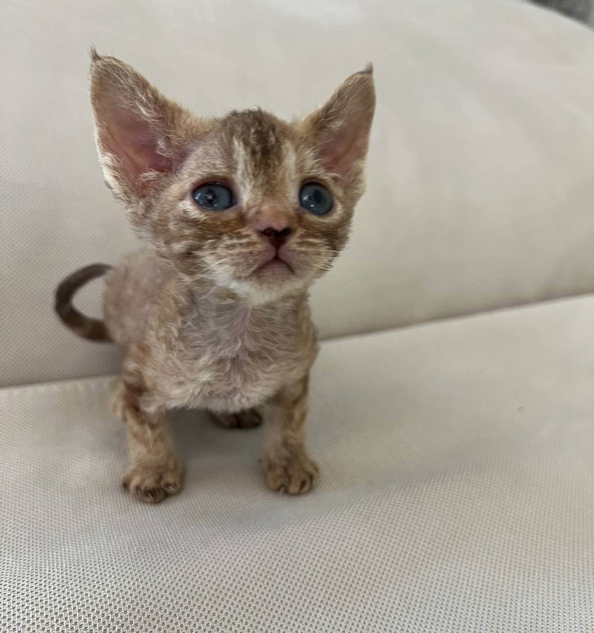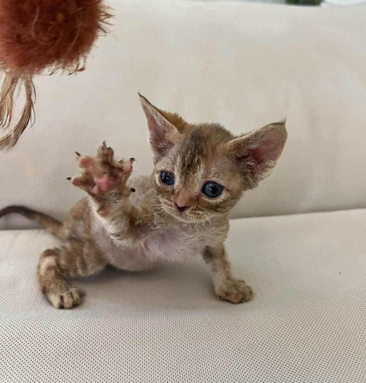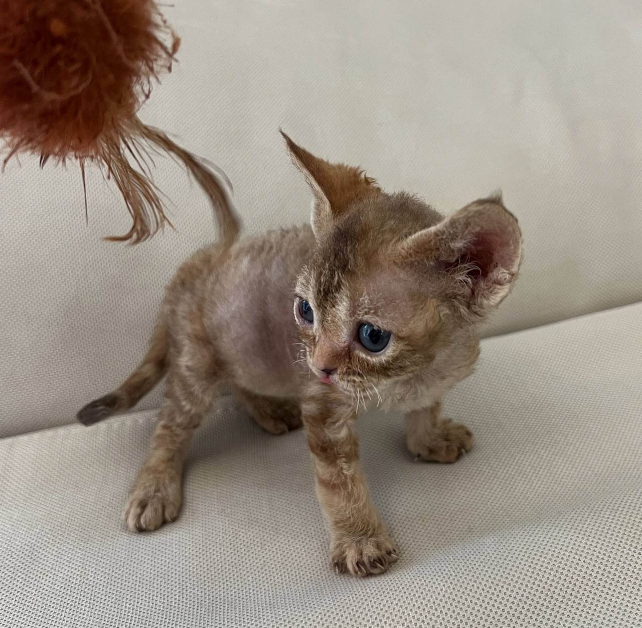 Bianka will be ready for her next adventure on 6/22/2026, with pickup available in Wood Dale, Illinois, or US delivery arranged. Reserve your place now—chances to welcome a Chocolate Tortie Devon Rex kitten like Bianka are truly rare.