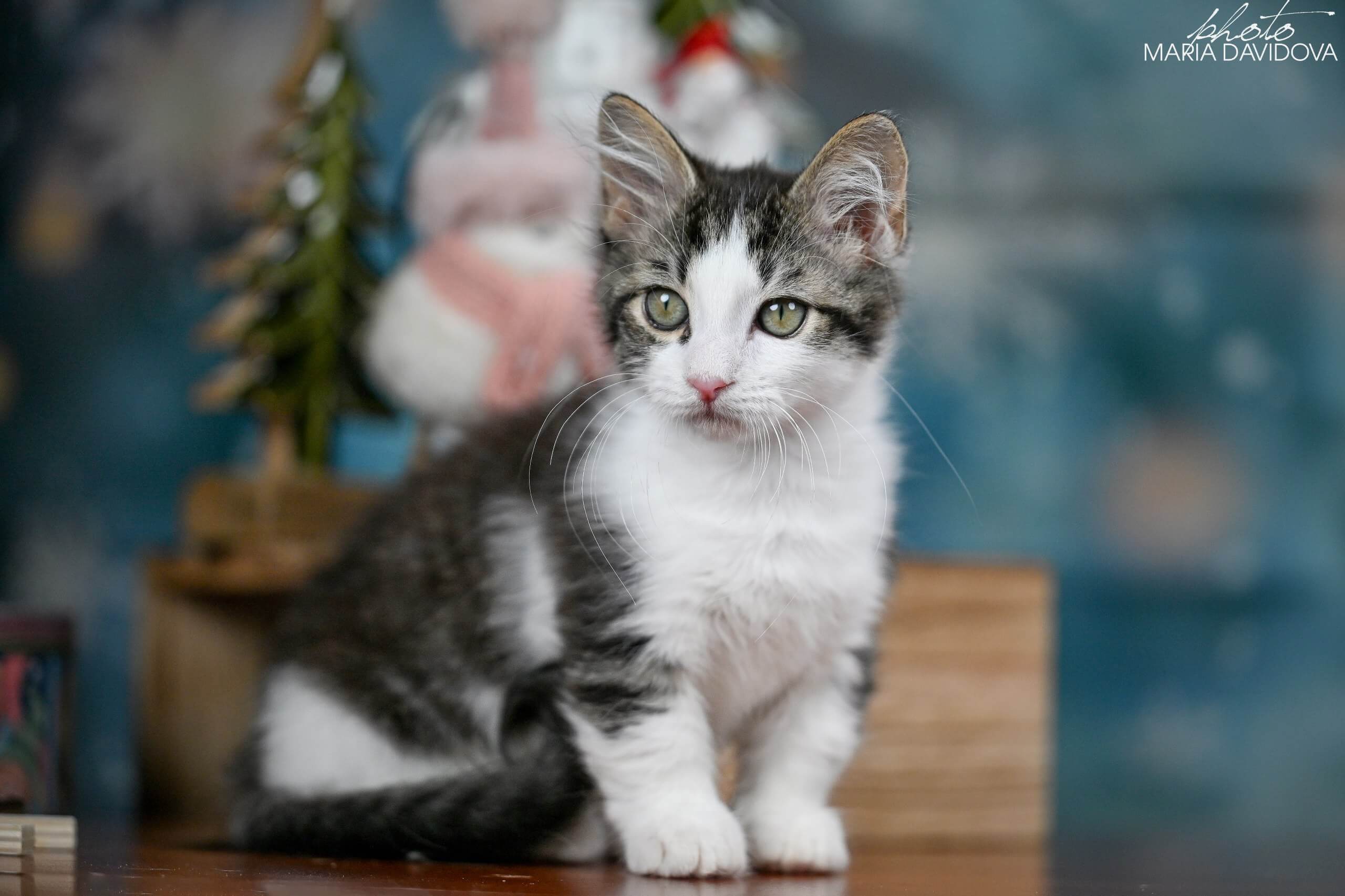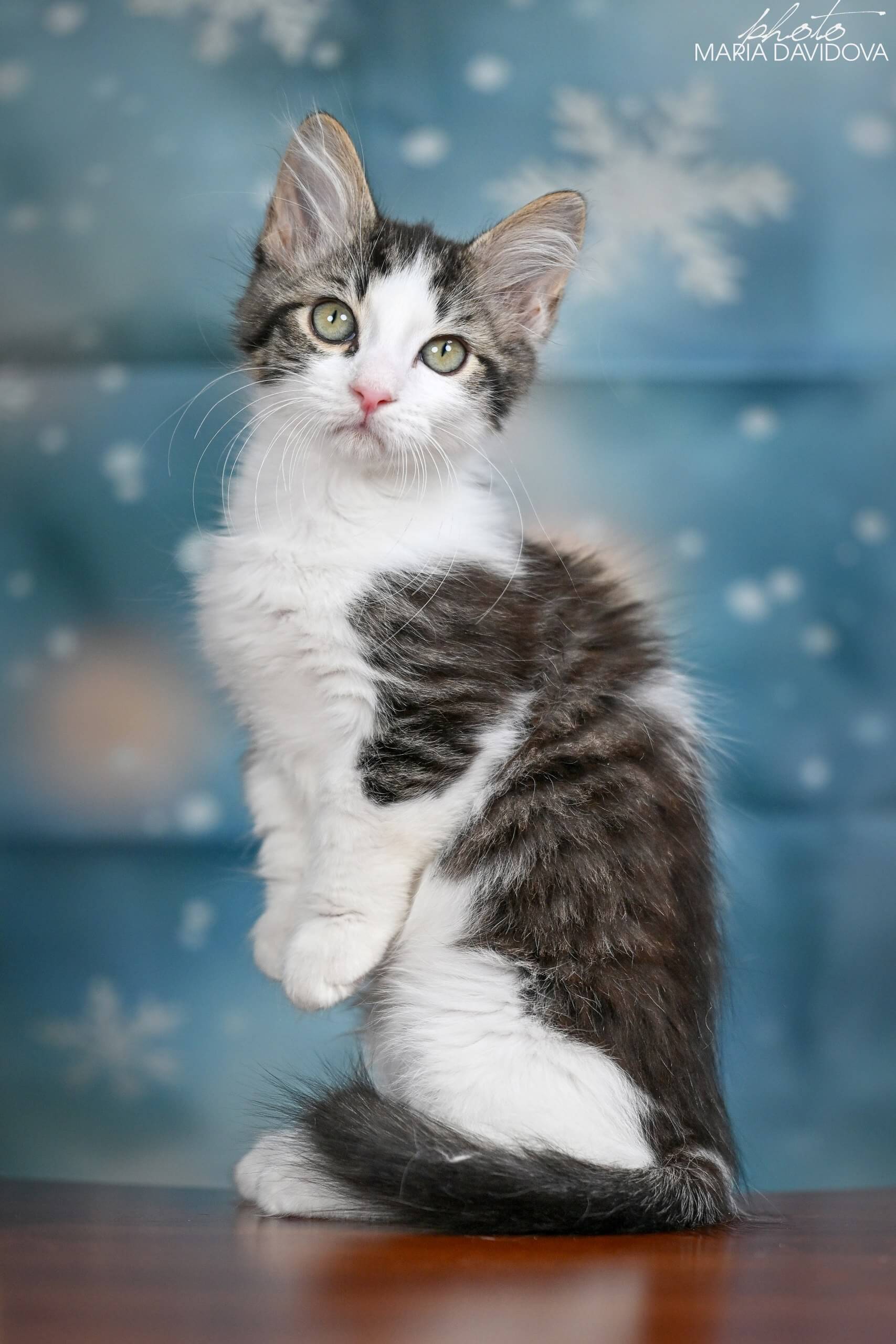 Meet Boss – your soon-to-be heart-stealer with a coat as captivating as midnight velvet, sprinkled with playful white spots. One glance into his bright yellow eyes, and you’ll feel an instant warmth only a truly special kitten can give.