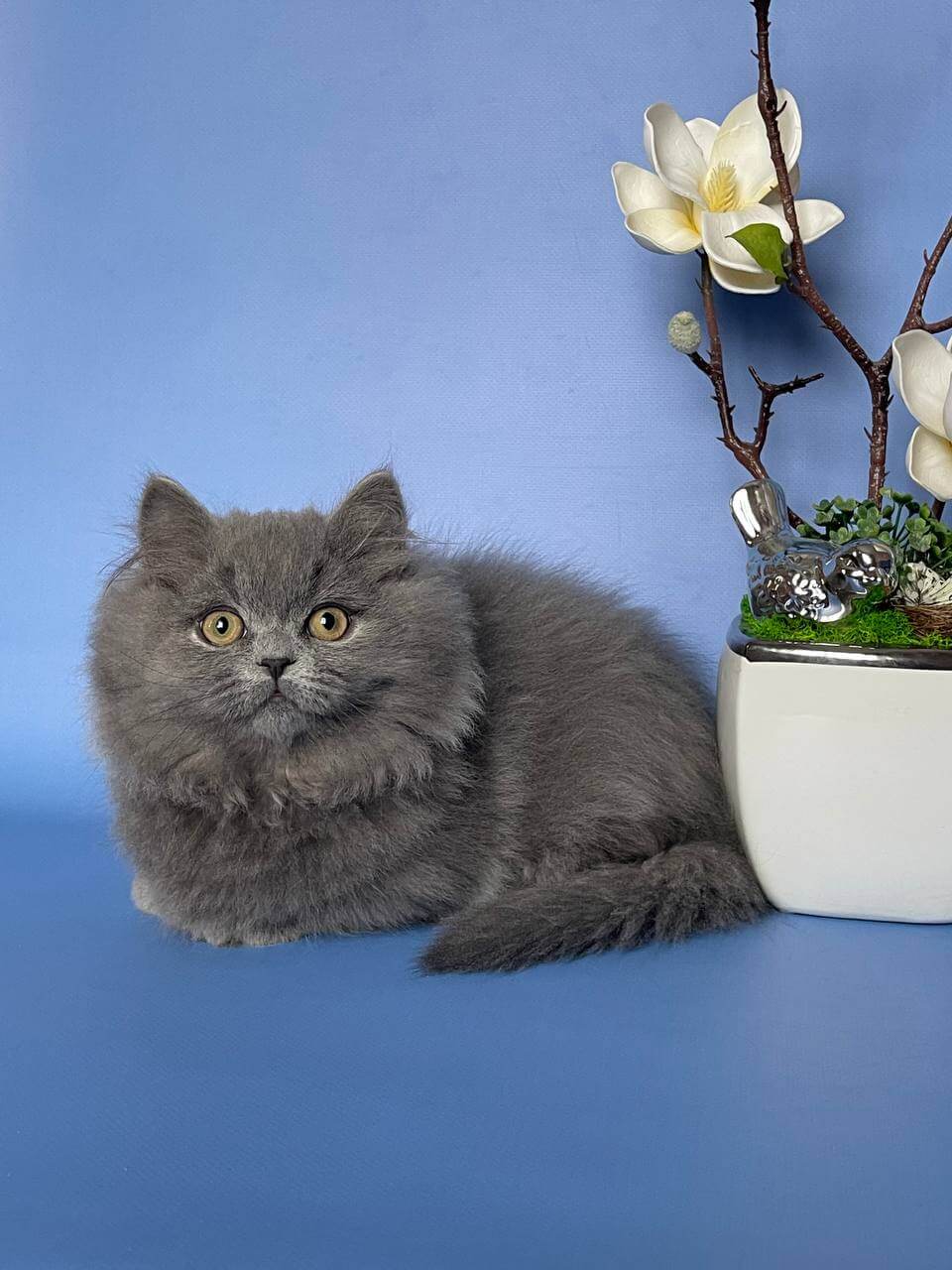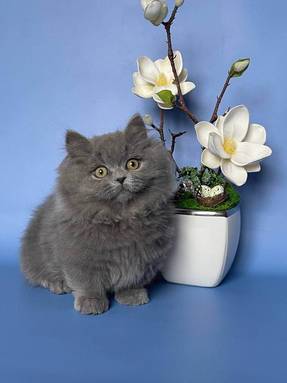 Meet Boss, the blue-eyed wonder who’s ready to melt your heart with every gentle purr and soft cuddle. With his plush blue coat and radiant yellow eyes, Boss has a calm confidence and loving presence that’s impossible to resist—he’s the kitten everyone wishes for, waiting to bring warmth and light to your home.