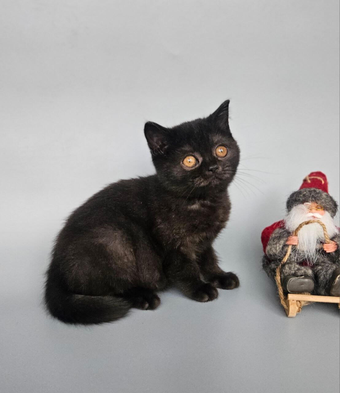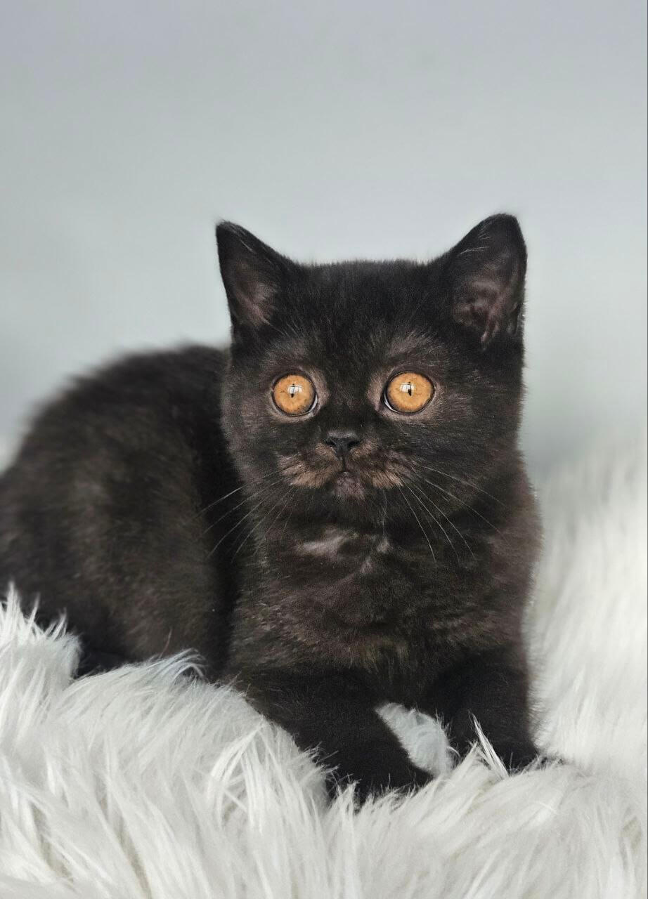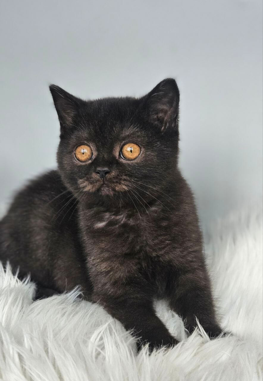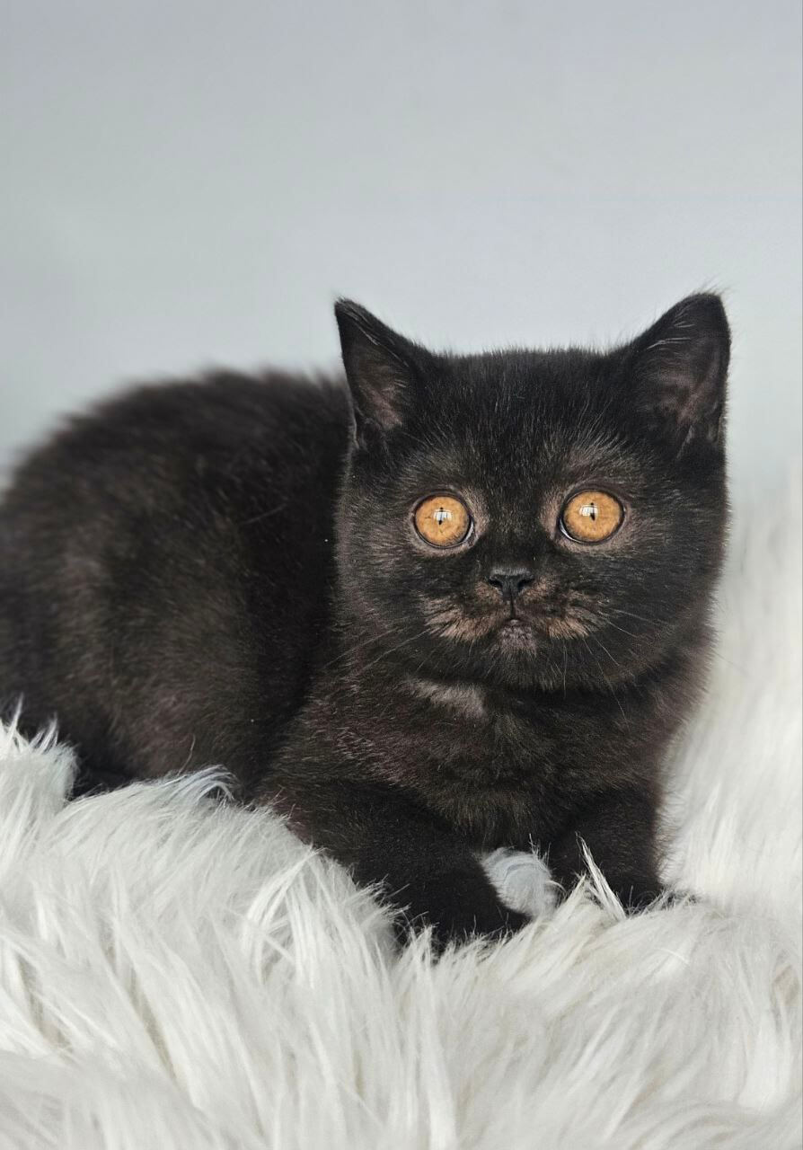 From the very first gentle touch, Busina’s soft black coat and sparkling orange eyes will fill your arms—and your days—with warmth and joy. She’s an elegant beauty, graceful and loving, with a playful spirit that will brighten every moment. Look for her in quiet sunbeams, happily napping, or greeting you with the sweetest purrs and affectionate head nudges.
