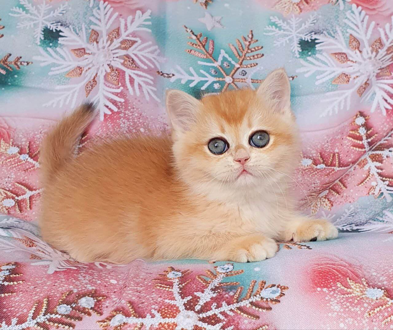 Businka is a show-quality sweetheart, playful and affectionate, who purrs in your arms and loves gentle strokes on her silky fur. Her elegant golden shimmer is matched only by her kind, curious spirit—she’ll fill your days with light and her gentle company.