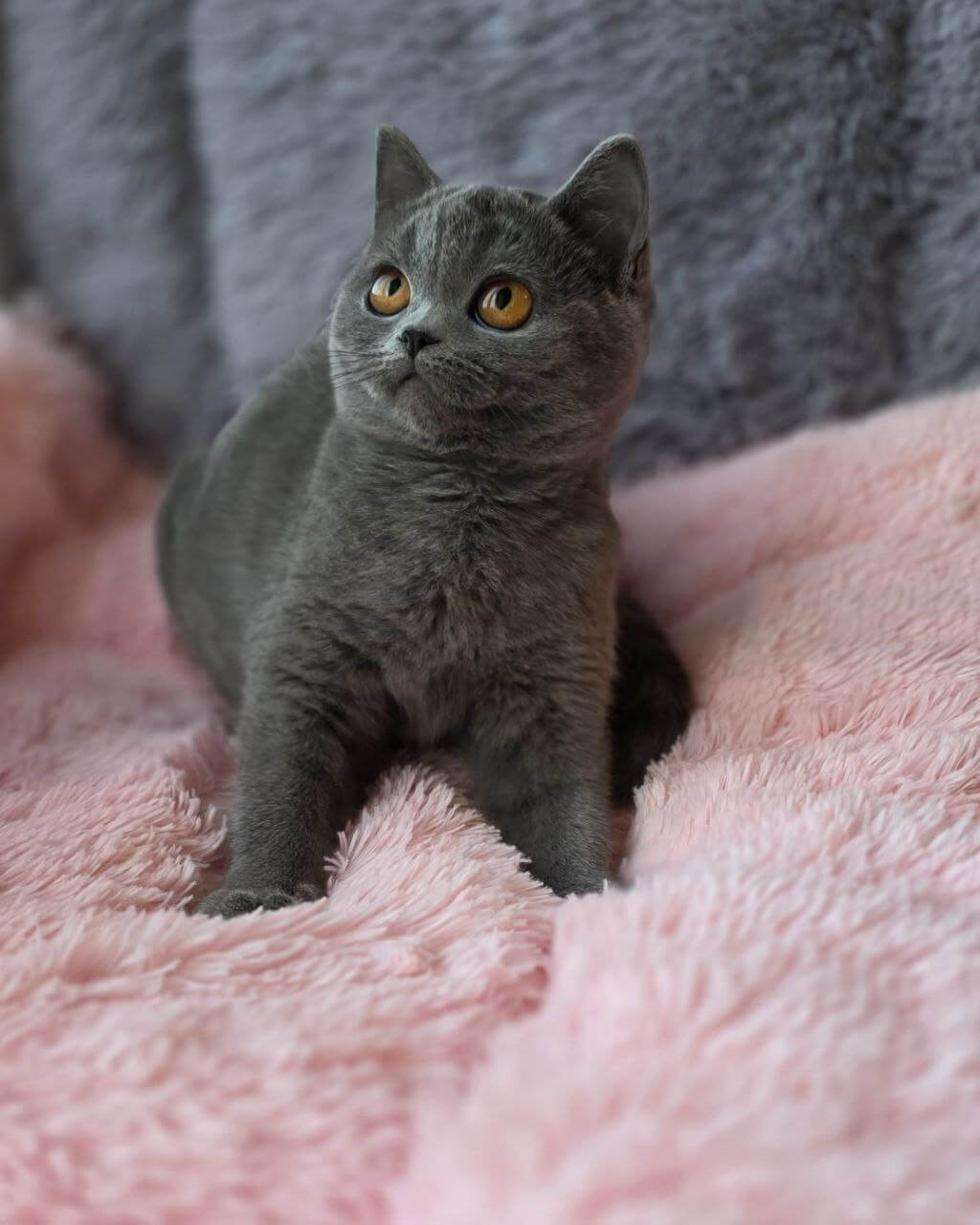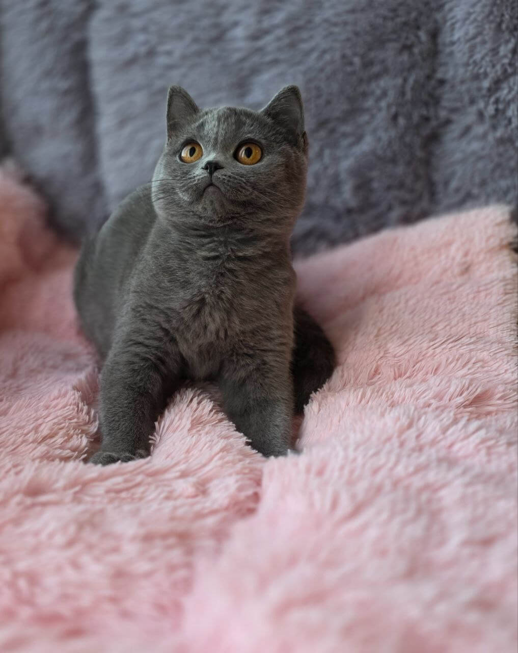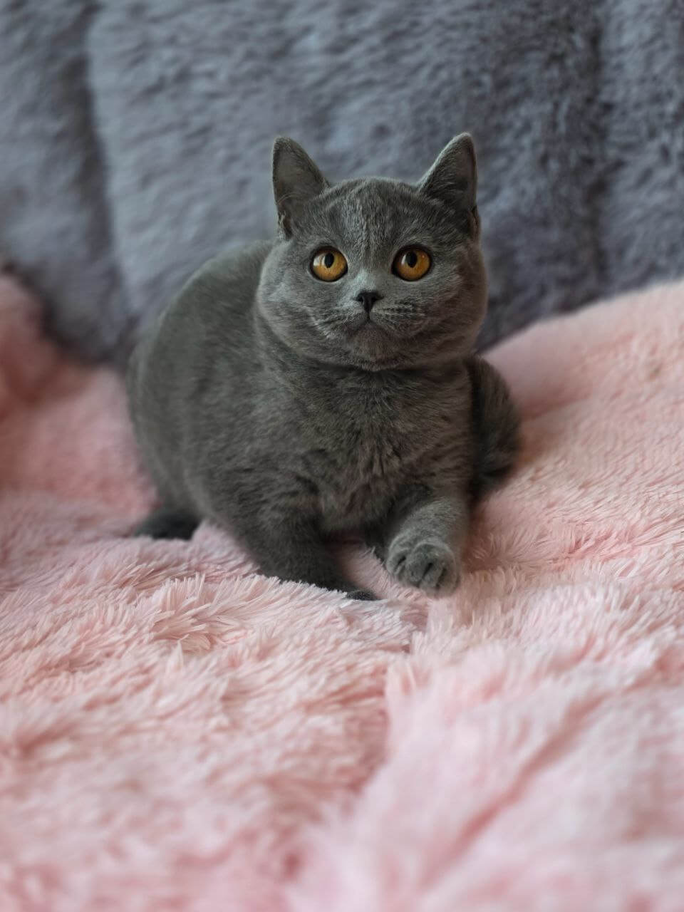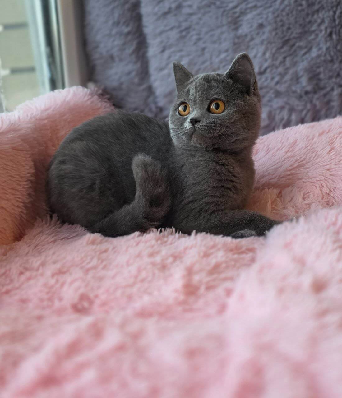Meet Caitlyn – your future heart-stealer. This precious blue British Shorthair girl radiates gentle warmth with her plush, silvery coat and big, soulful yellow eyes that seem to glow with quiet affection. She’s the kind of companion who will melt into your arms, purring softly as you nestle into her irresistibly soft fur, and follow you around just to share in your day’s simple joys.