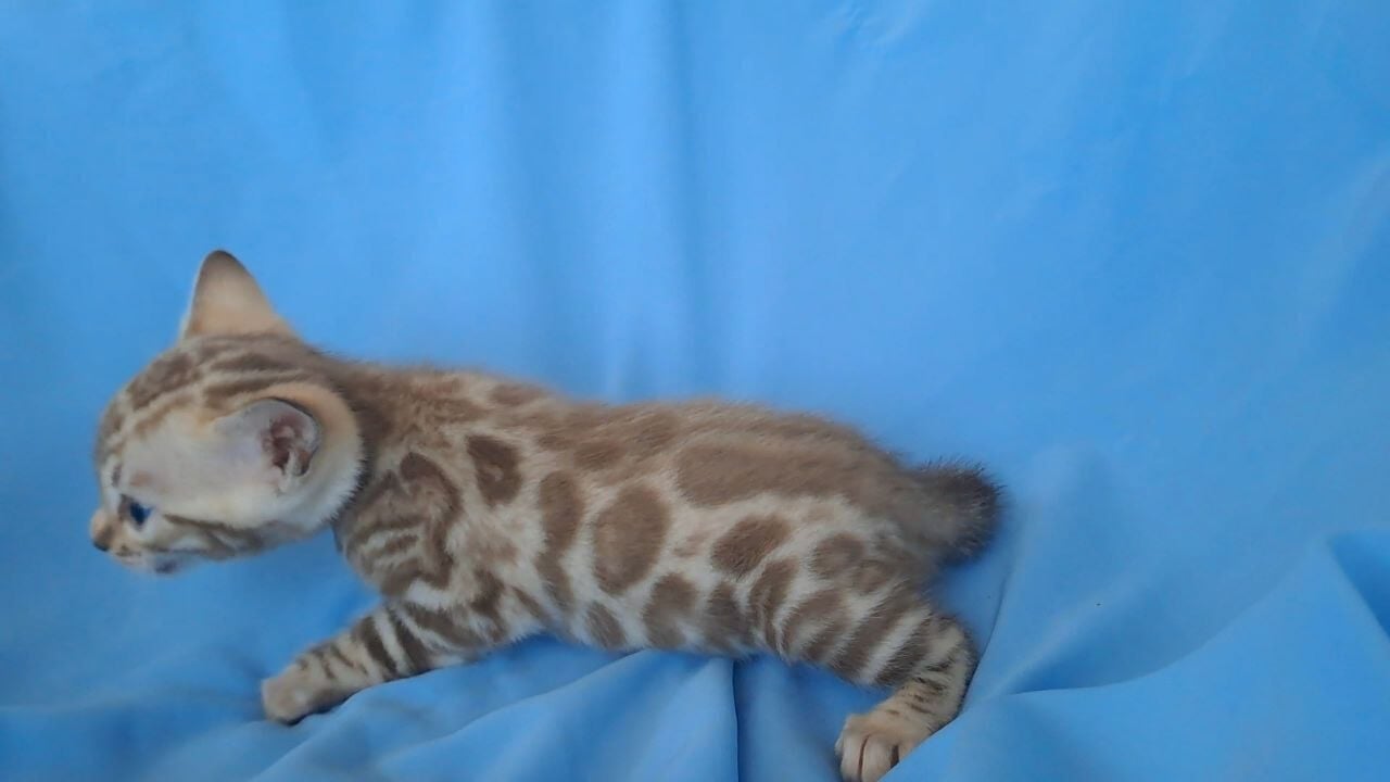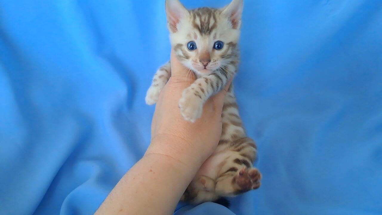 Calista, a Black Tabby Point Bengal kitten, invites you into her world from the moment you meet her. Stroking her plush, silky coat is like running your hand over the softest velvet, and when her blue eyes gaze up, flecks of silver light seem to dance in their depths. In your arms, her petite frame purrs with gentle confidence—a living, breathing treasure.