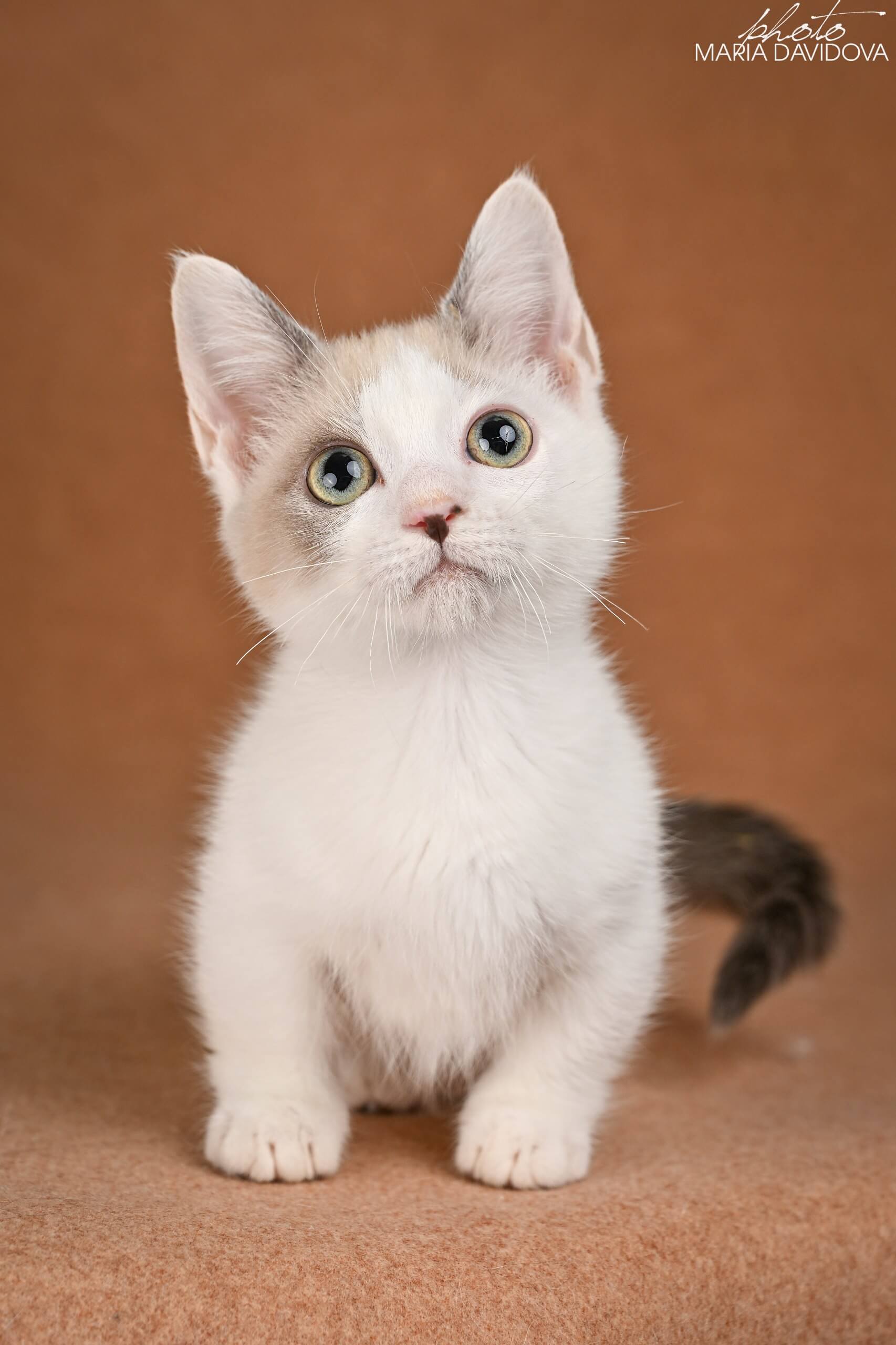 Cassani is more than adorable: he’s confident, playful, and endlessly curious, trotting around on those signature short legs with an elegant kitten bounce. Whether he’s investigating sunbeams or curling up in cozy corners, Cassani turns every moment into pure joy. His unique markings and plush, silky coat make him instantly unforgettable—a show-quality kitten with a loving, gentle spirit.