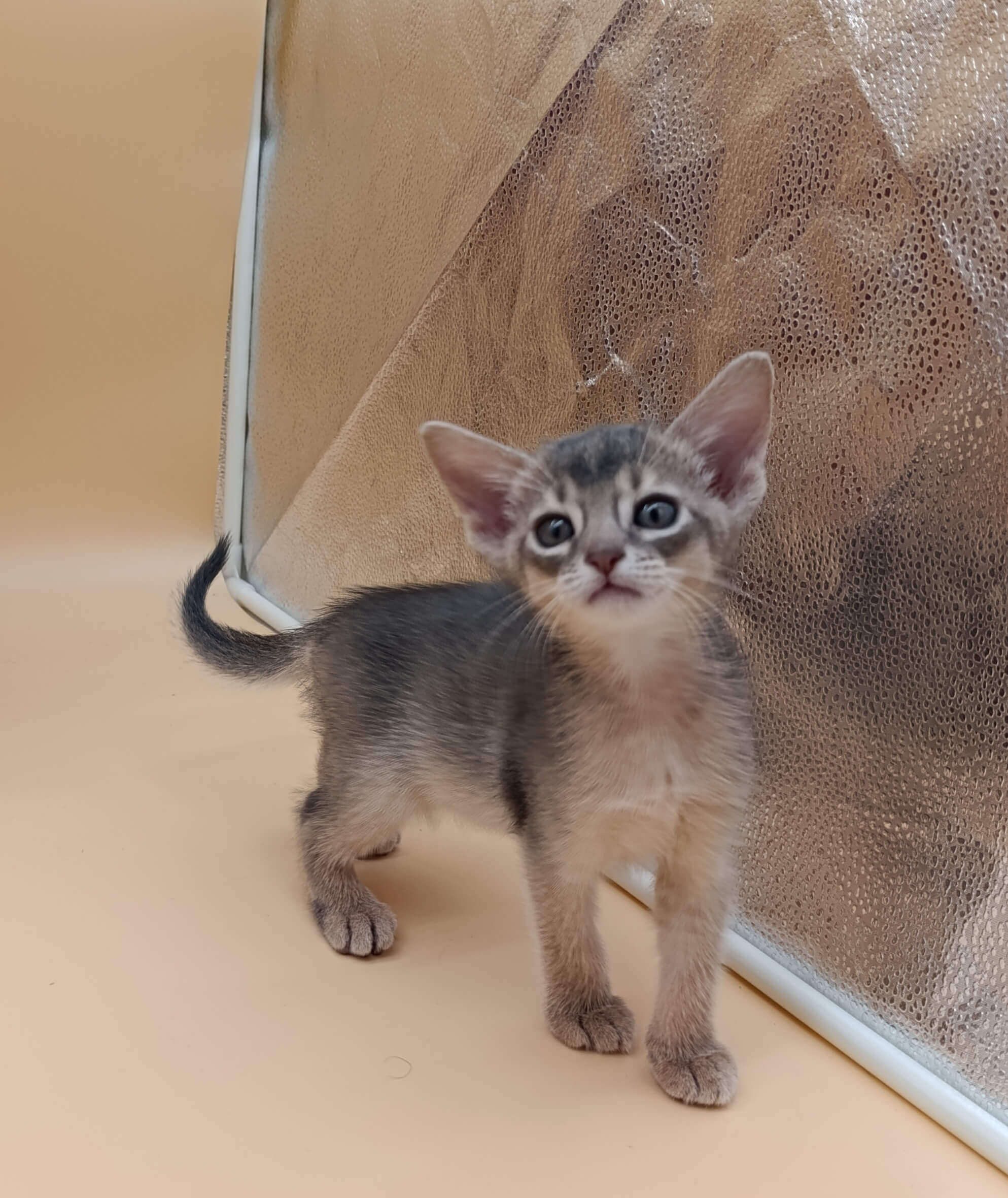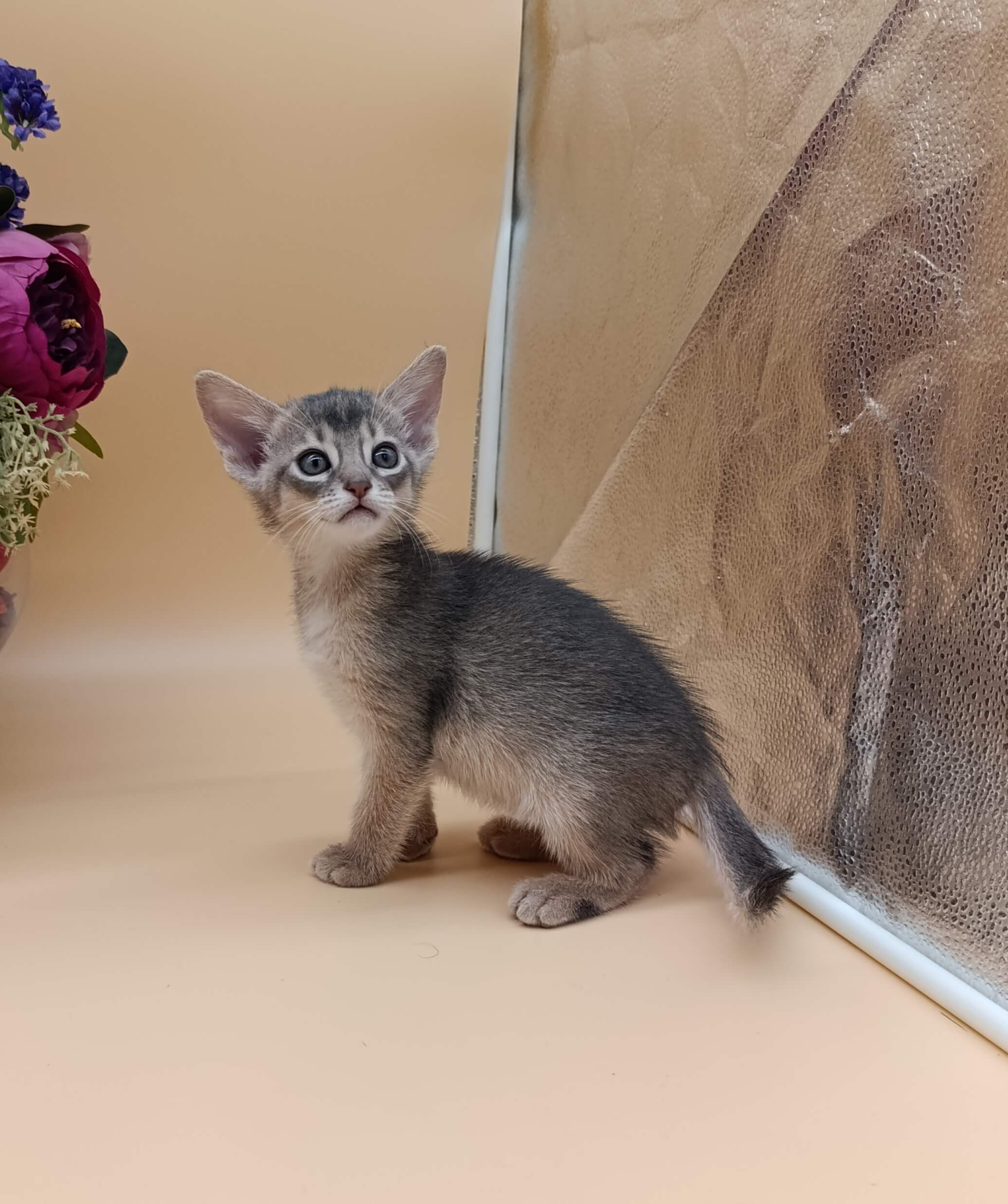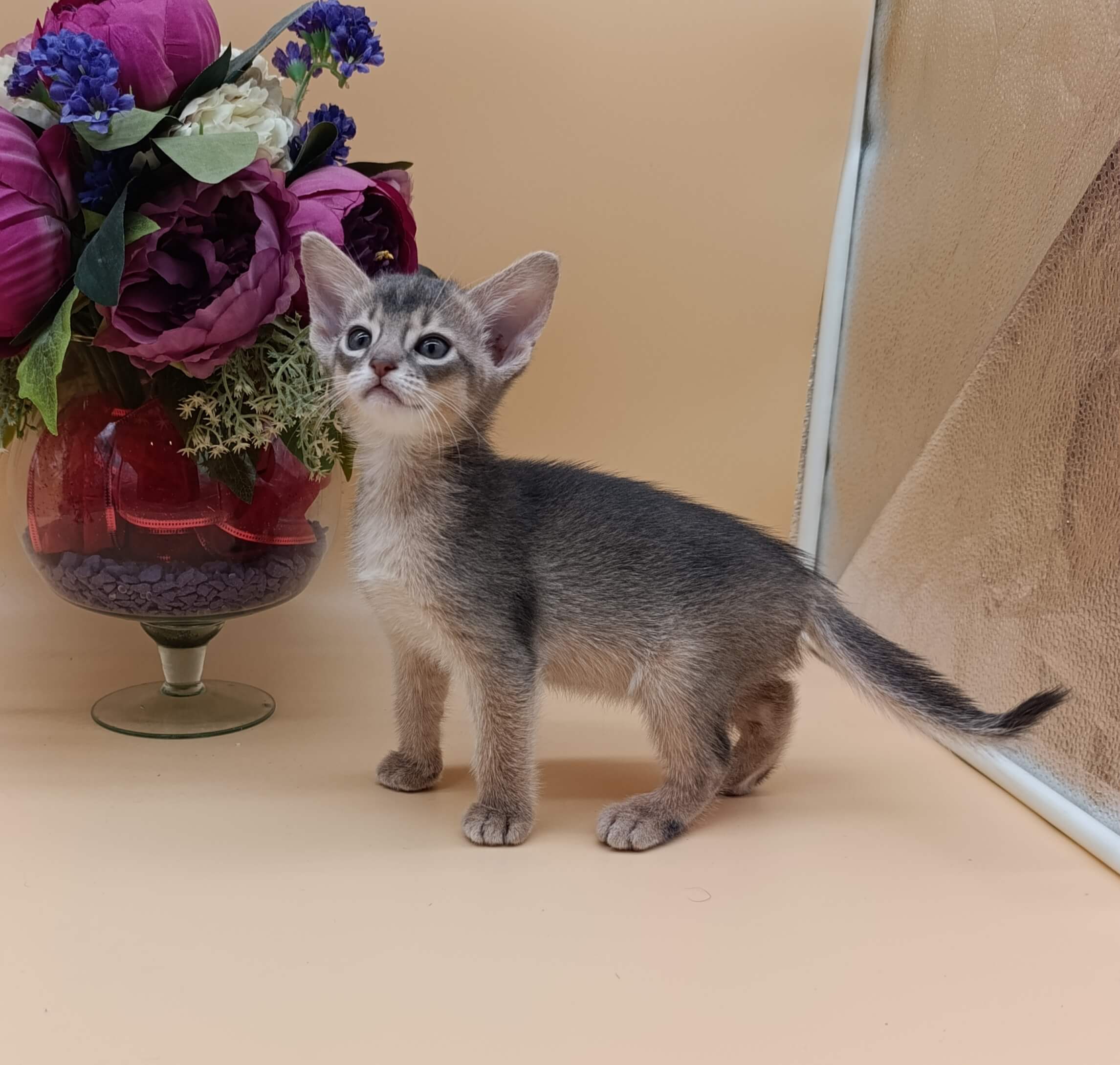 Meet Catrina — a blue Abyssinian girl whose gentle purr and golden-yellow eyes will instantly wrap your heart in warmth. With a silvery-blue coat that shimmers in the sunlight and an affectionate, curious spirit, Catrina adores cuddling close, exploring softly with her velvet paws, and gazing at you with soulful eyes that promise lifelong companionship.