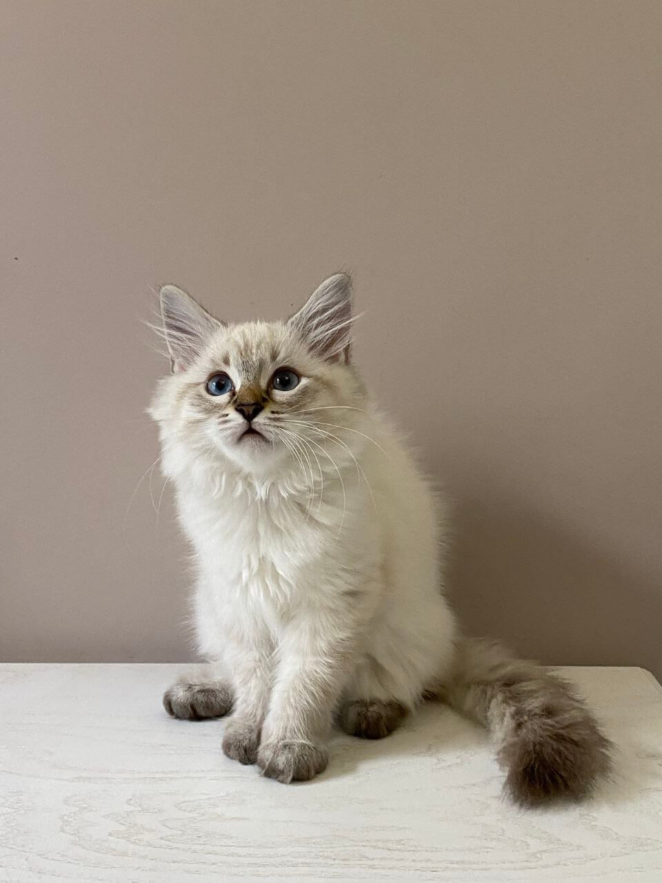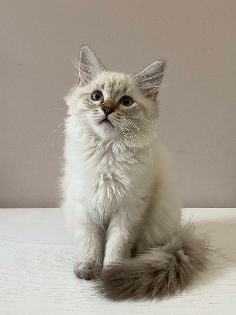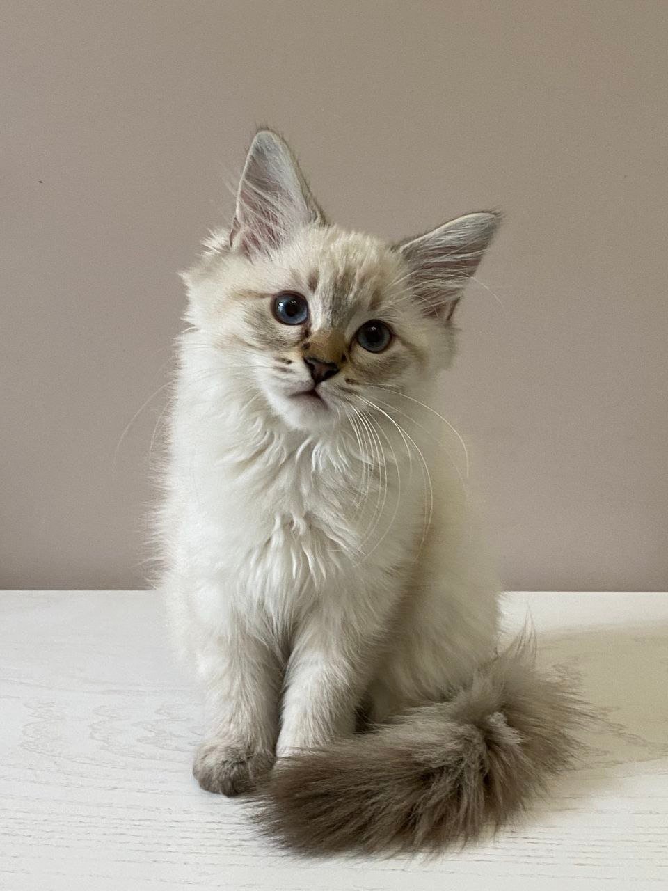 Meet Chanel, an enchanting female Siberian kitten with a luxurious seal tabby point coat and mesmerizing blue eyes. Born on June 23, 2025, she boasts champion bloodlines and show-quality traits. Ready to join her new family by October 23, 2025, Chanel is perfect for those seeking a loving, beautiful pet.