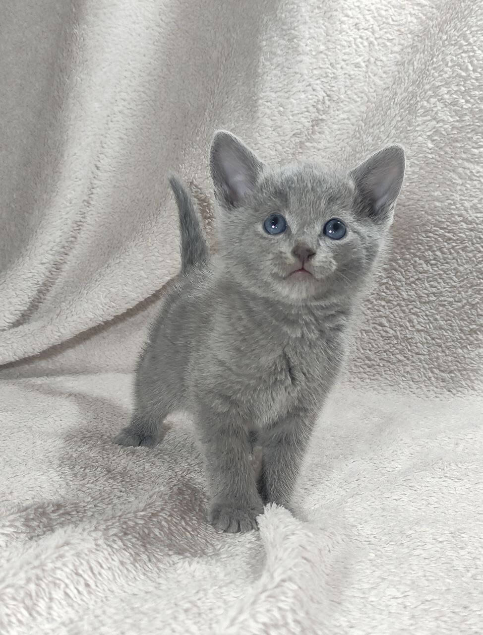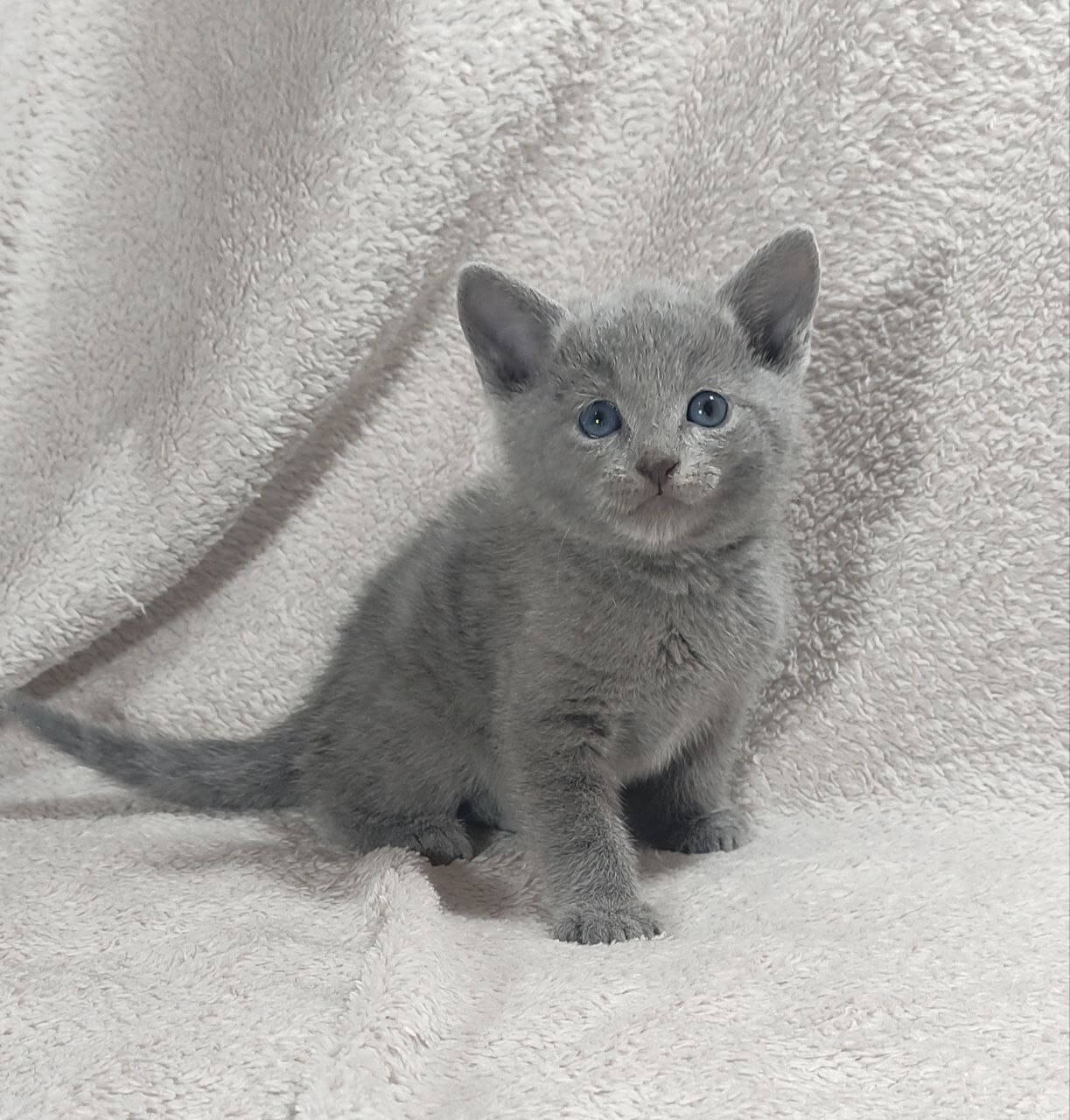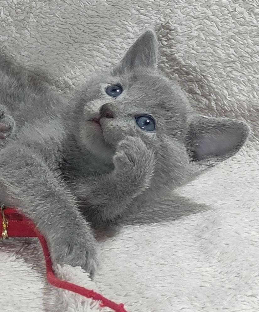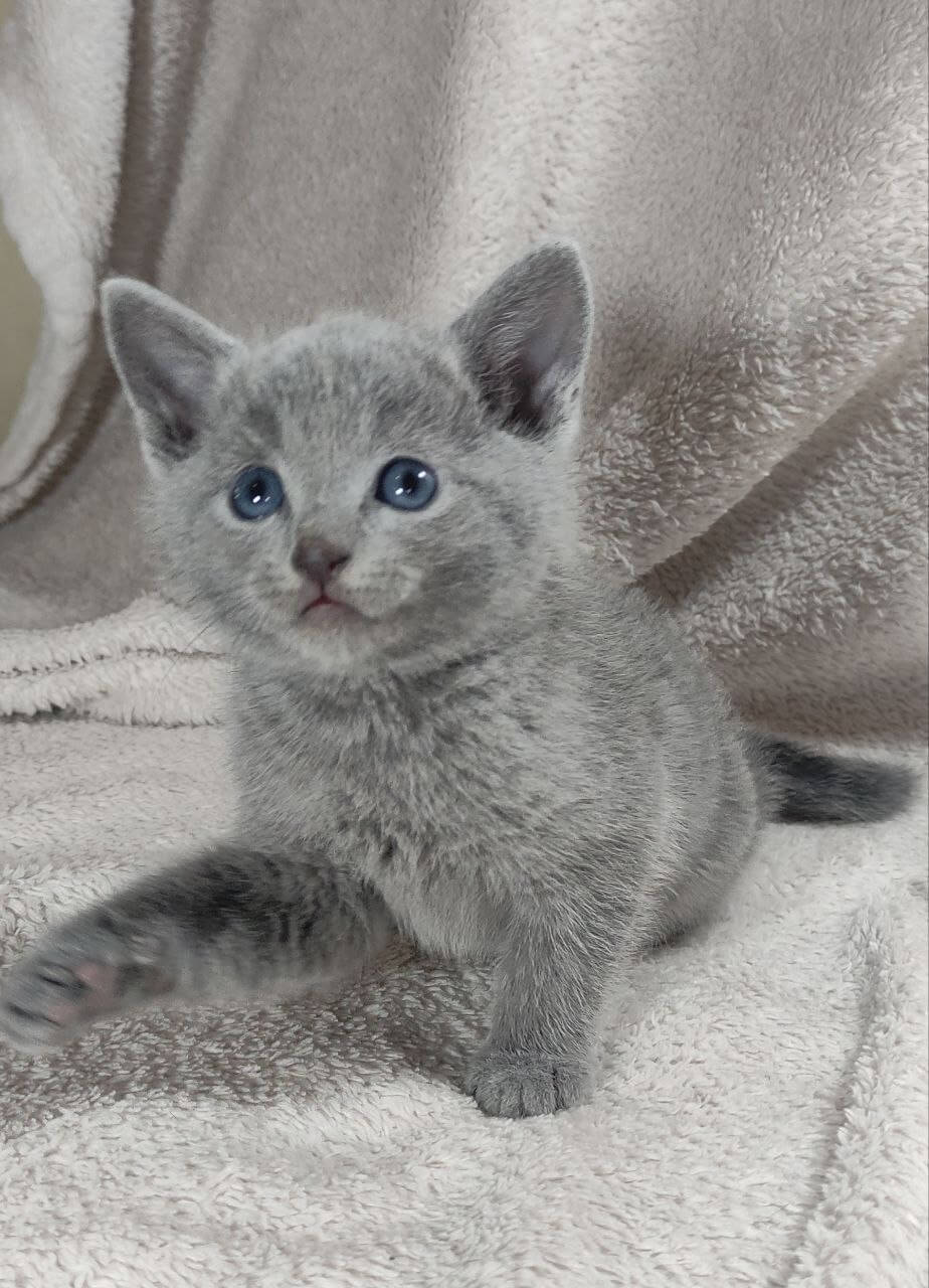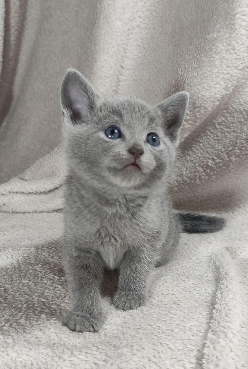 Meet Charlie – a Russian Blue kitten who will steal your heart the moment you look into his gentle green eyes. His silvery-blue coat is as soft as a cloud and begs for tender strokes, while his calm, sweet temperament makes every cuddle with him feel like home.