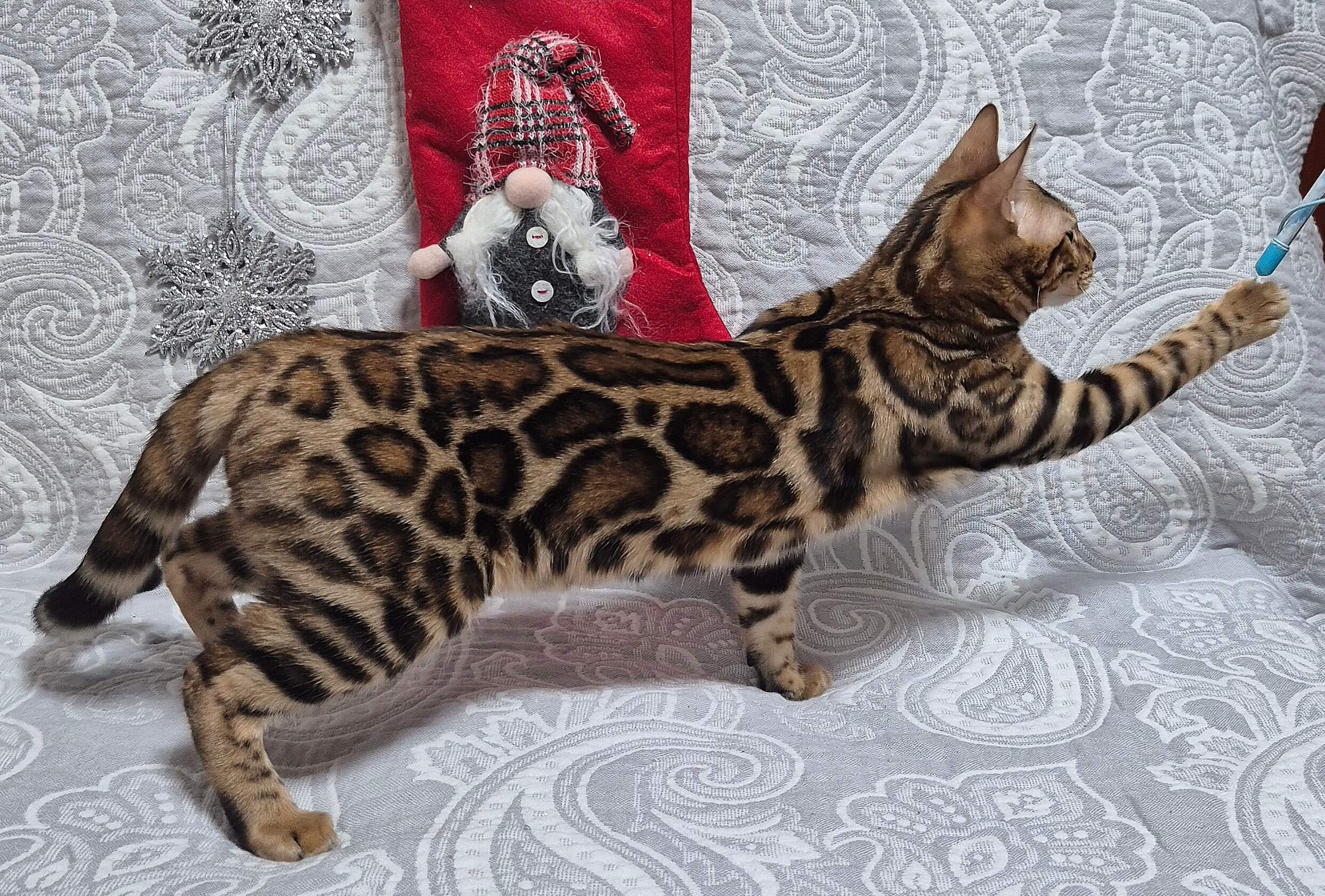 Meet Cleo, an exquisite female Bengal kitten with champion bloodlines, now available for reservation on the Meowoff website. This stunning black tabby spotted beauty boasts striking yellow eyes and is of show quality. Born on June 13, 2025, Cleo will be ready to join her new family by October 13, 2025.