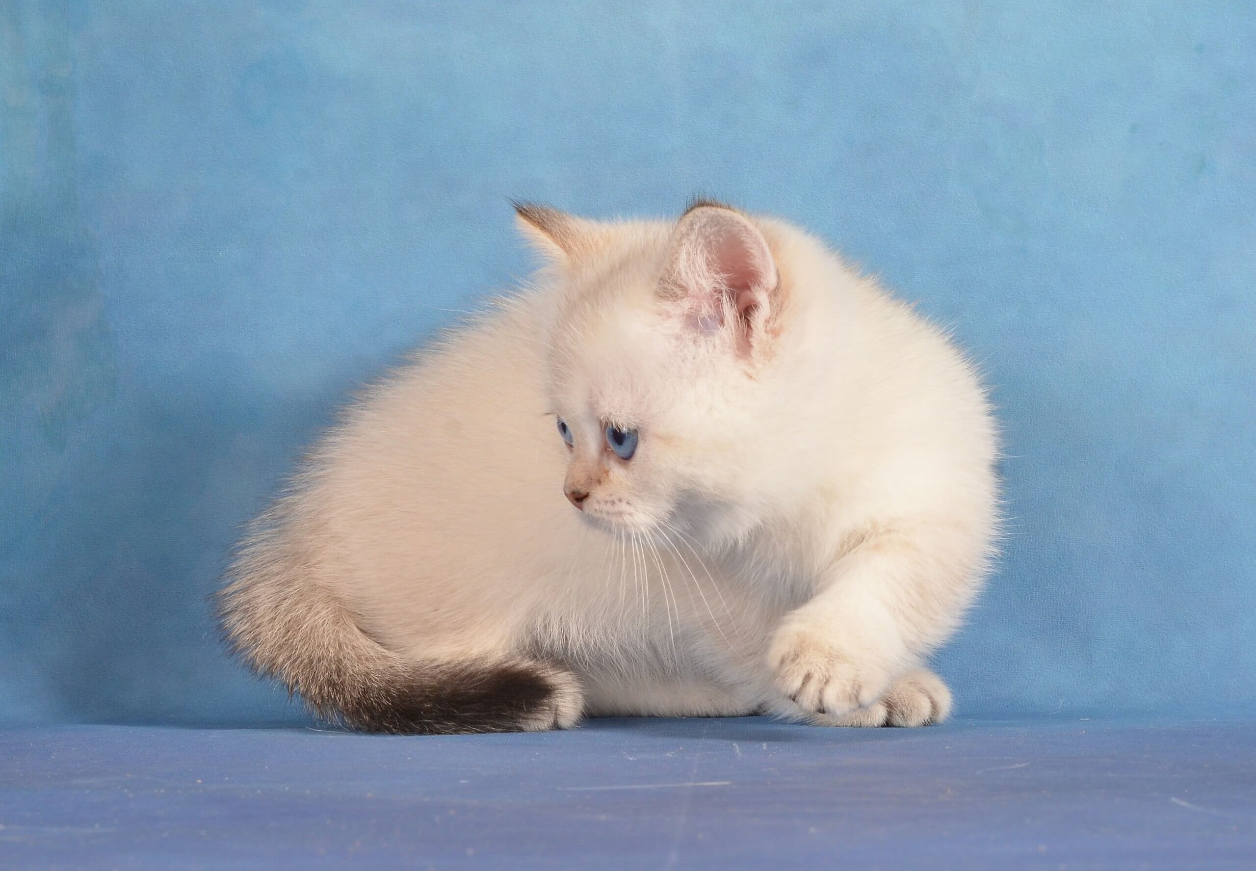From the moment this enchanting Black Golden Shaded Point beauty looks up at you with her soulful sapphire-blue eyes, you’ll be lost to her gentle magic. Cleopatra is pure affection wrapped in a cloud-soft purr: she adores soft strokes, leaning in with a shy nose-bump and curling quietly in your arms, her warmth melting the day away.