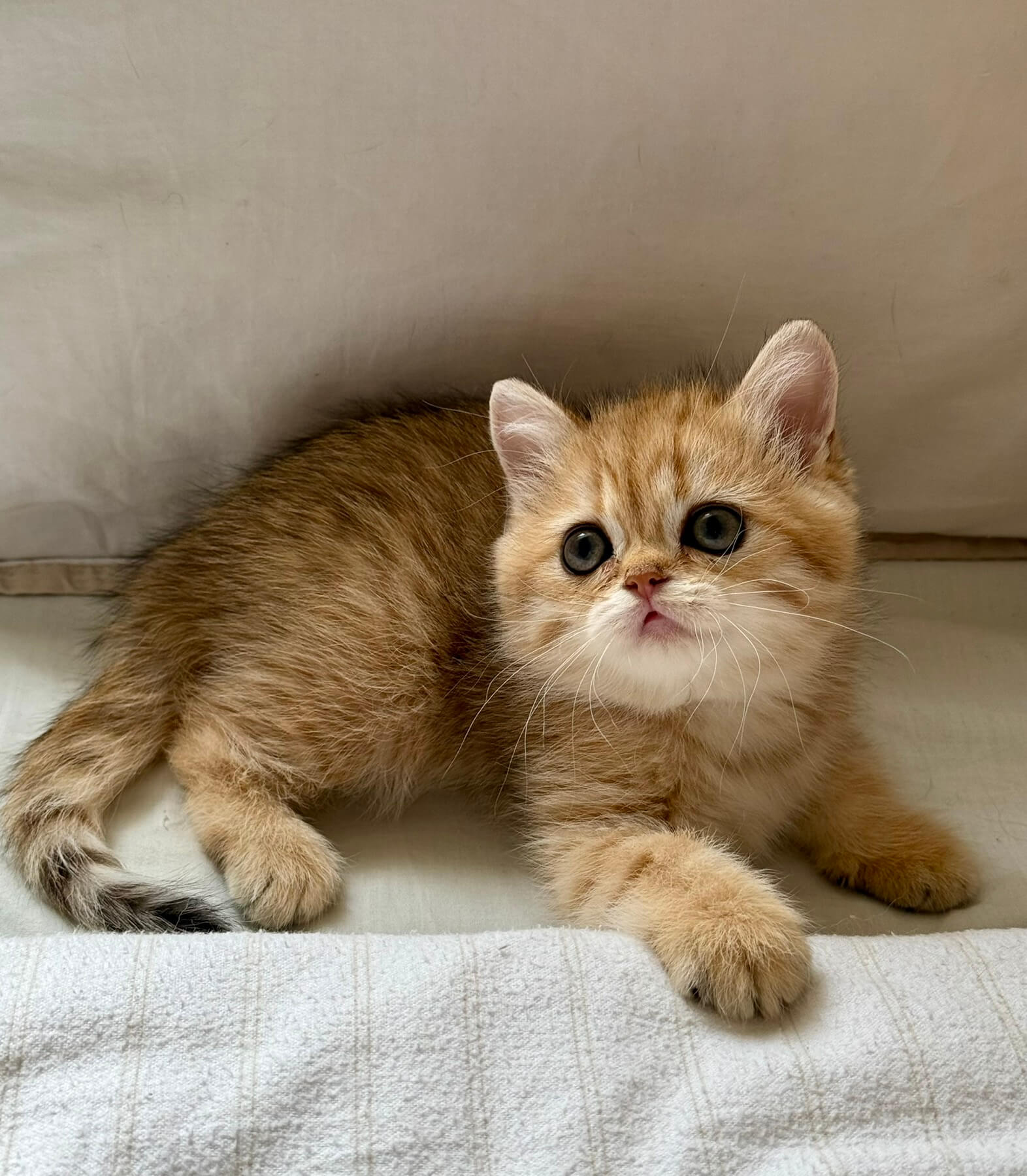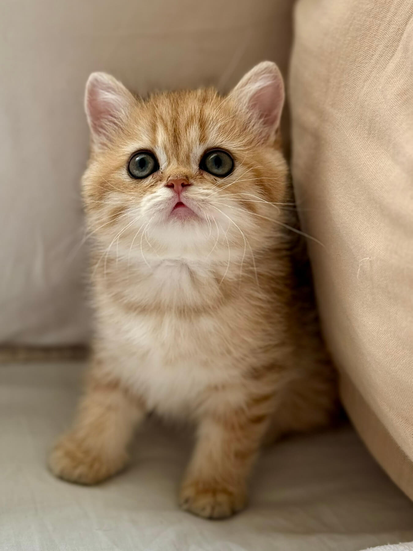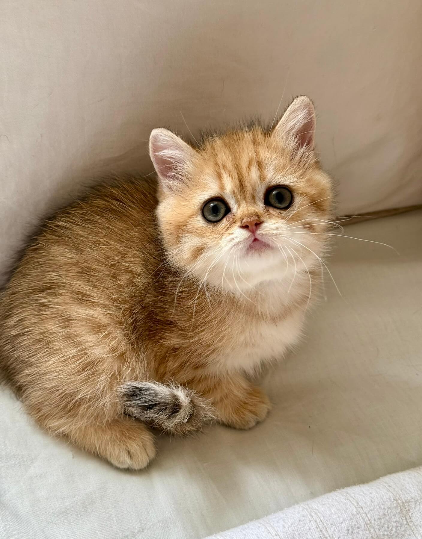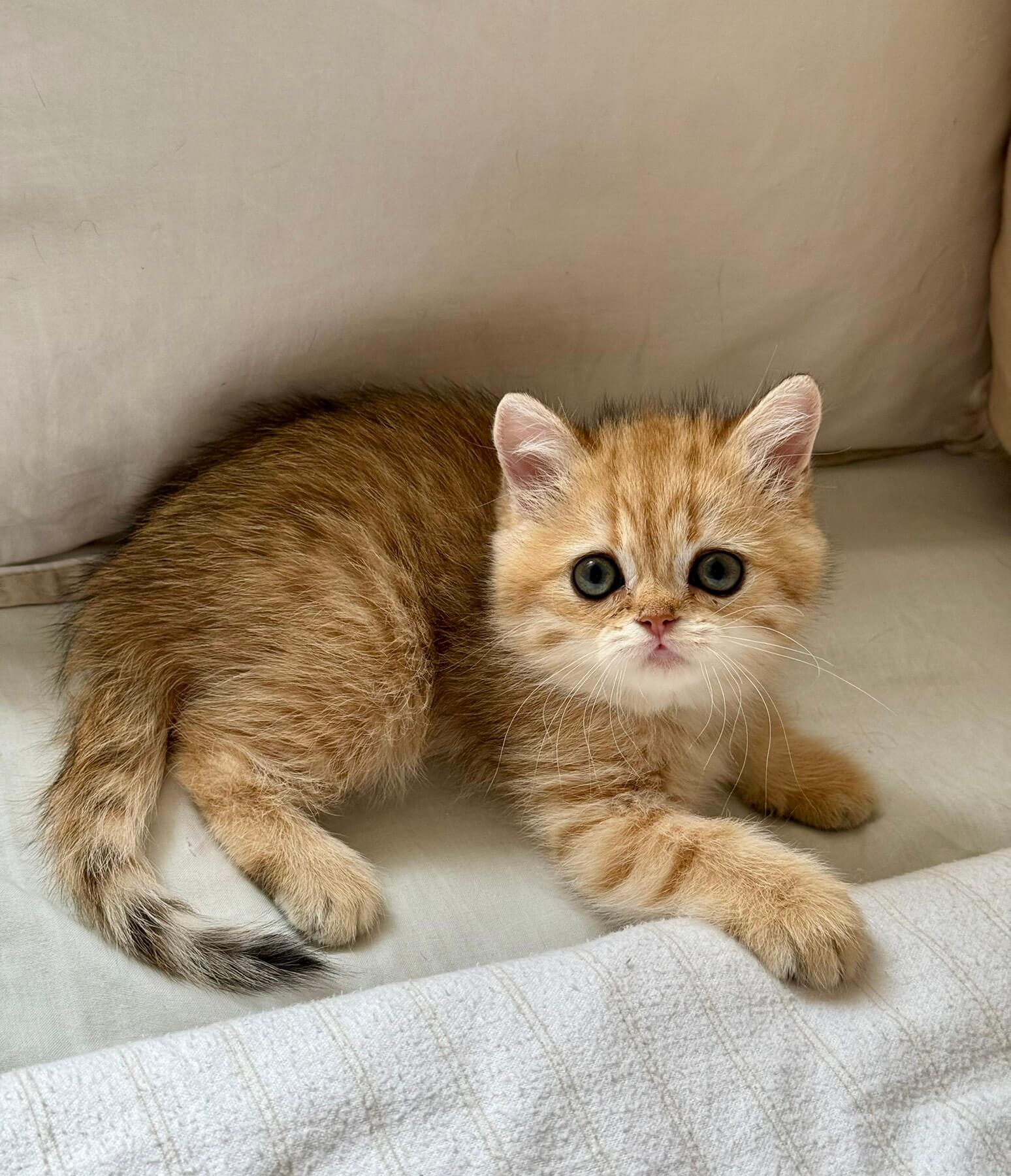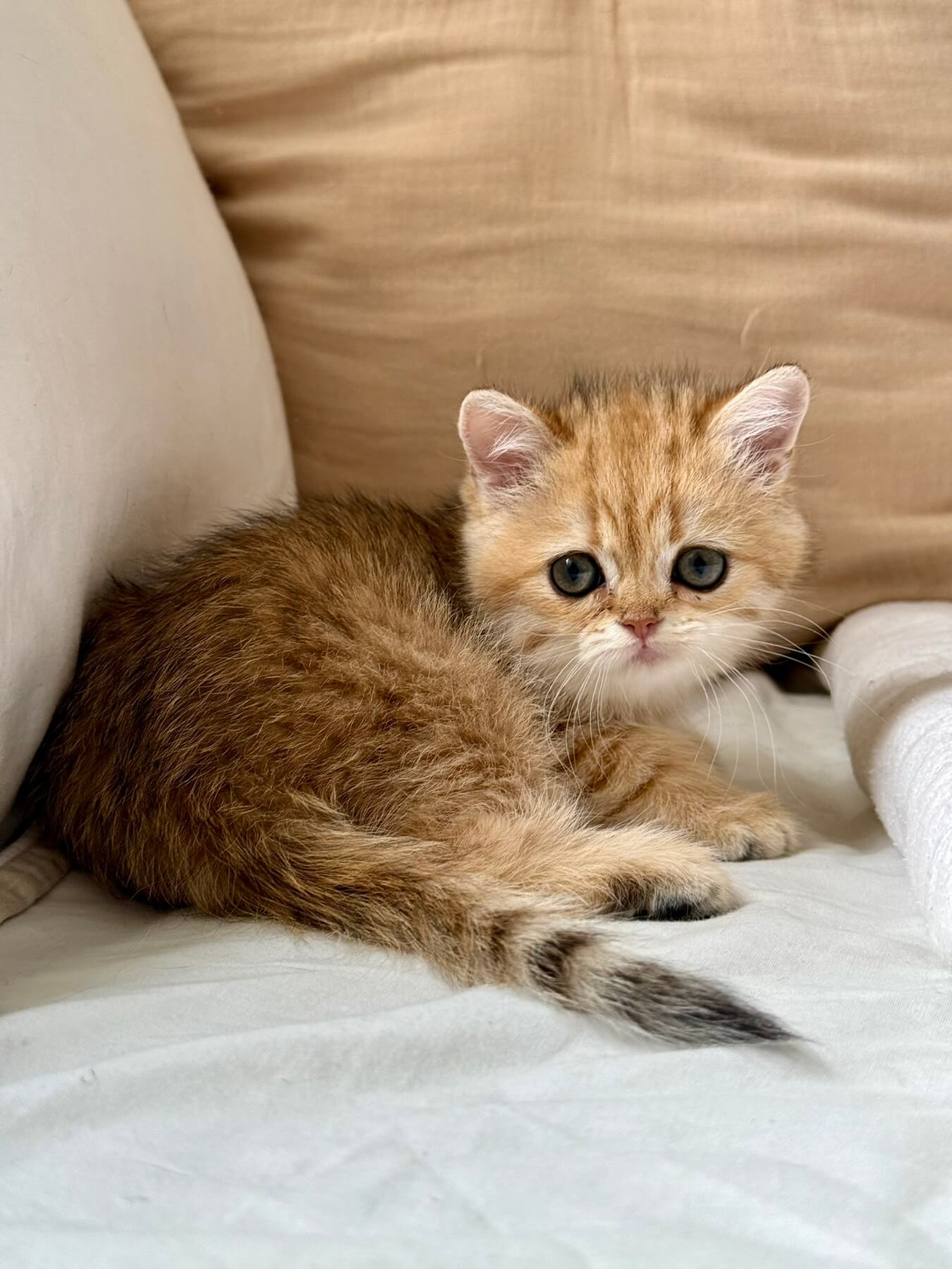 Meet Coco, a stunning female Scottish Straight with a captivating black golden spotted coat and striking green eyes. Born on July 22, 2025, Coco will be ready to join her new family on November 22, 2025. Hailing from champion bloodlines, Coco is of show quality and comes with a provisional pedigree—just reach out for pricing details. She is registered and will be spayed, making her a perfect pet.
