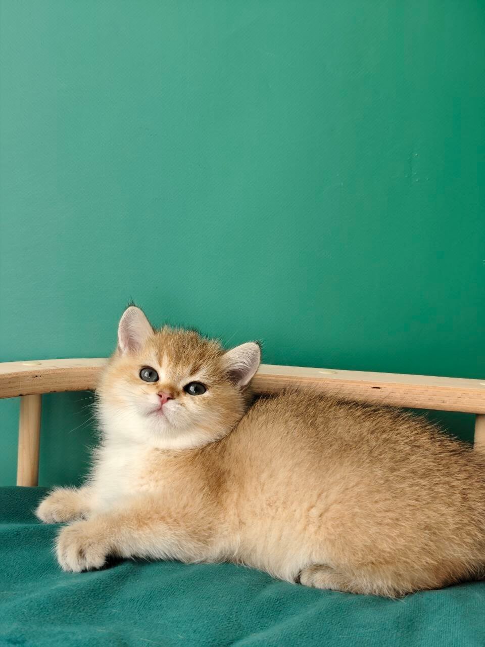 Meet Colin — a little heart-stealer wrapped in a cloud-soft British Shorthair coat, kissed with shimmering black-golden shades. One look into his luminous green eyes and you’ll feel instant warmth, as if he’s been waiting just for you to become his forever friend.