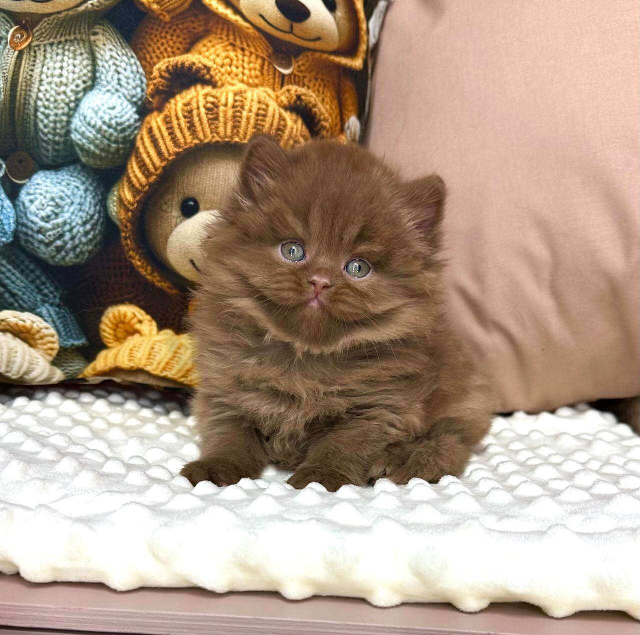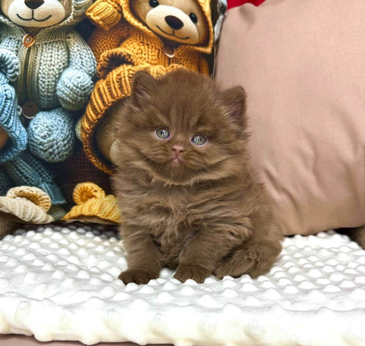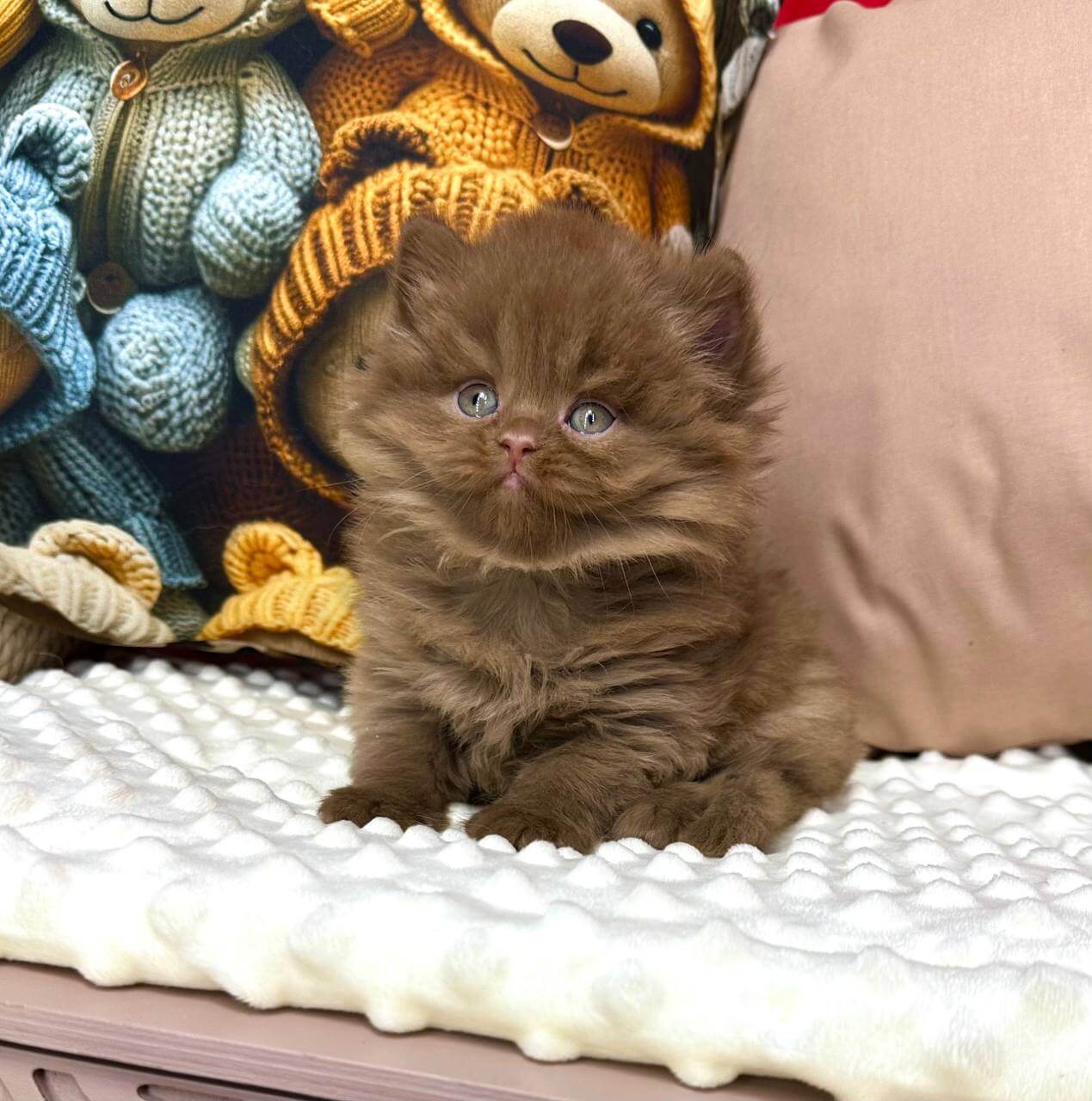 Meet Cream Brûlée, our plush cinnamon British Longhair boy—with the softest fur and golden-yellow eyes that sparkle with gentle warmth. Imagine scooping him into your arms, feeling him nuzzle close as his tiny purrs soothe away the day’s worries.