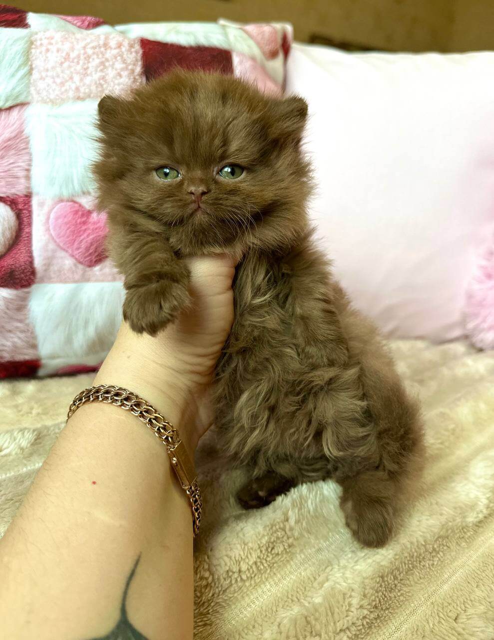 Cremka is the picture of British grace with a delightful dash of playful spirit. Curious and gentle, she loves to perch watchfully from sunny corners and will greet you with a soothing purr, her furry tail swishing in friendly welcome. Those deep yellow eyes sparkle with mischief and affection, while her soft, cinnamon coat feels like pure silk beneath your touch.