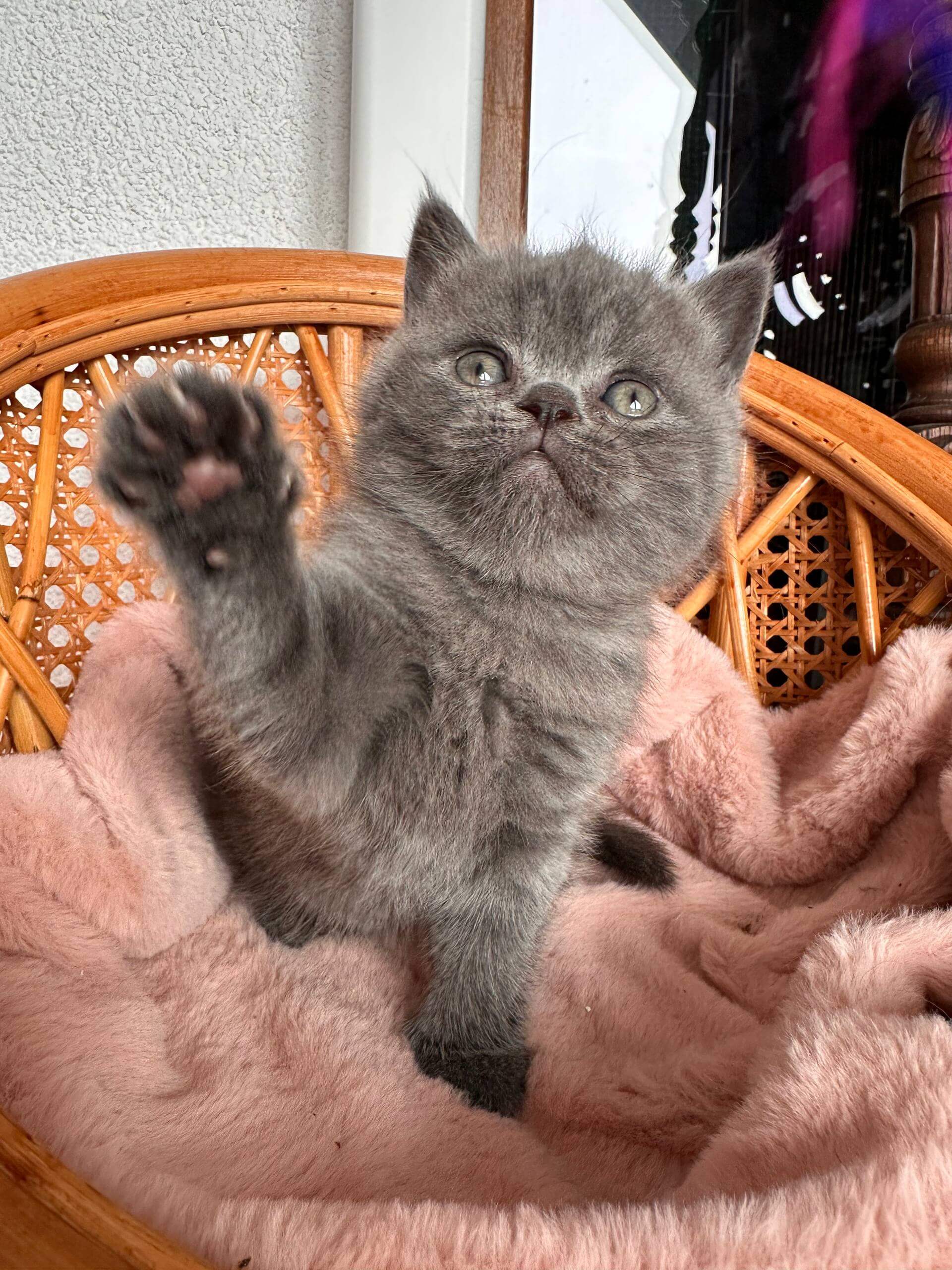 Meet Daineris — a dreamy blue beauty with golden eyes that shimmer like morning sunlight. If you’re searching for a little soul to fill your home with gentle purrs and warmth, Daineris will enchant you with her soft gaze and loving spirit from the very first cuddle.