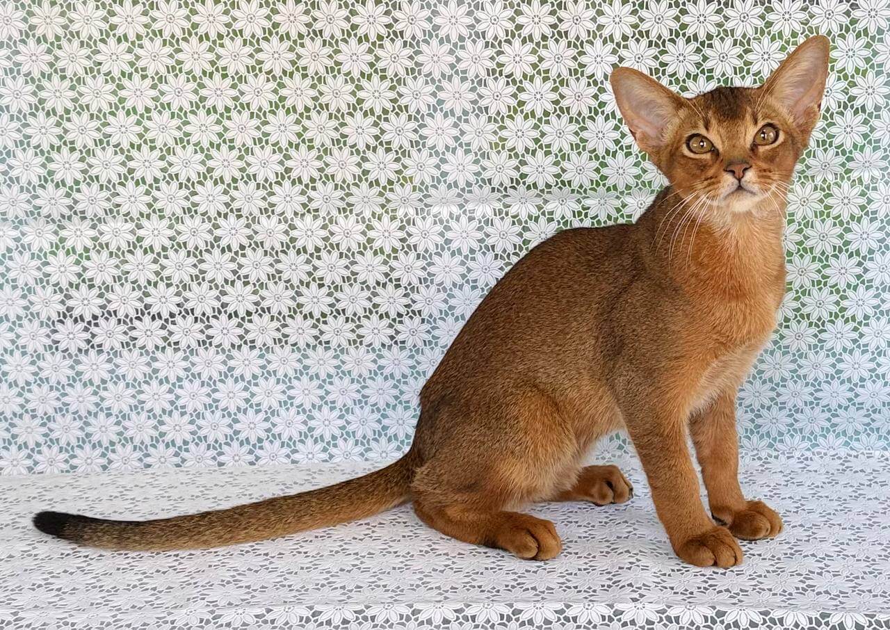 Meet Dar, an exquisite male Abyssinian kitten with a stunning ruddy coat and captivating yellow eyes. Born on May 25, 2025, this show-quality kitten carries champion bloodlines and offers a world-class pedigree (inquire for pricing details). Dar is ready to leave his breeder home starting September 25, 2025, and will be neutered/spayed as a pet, unless otherwise requested.