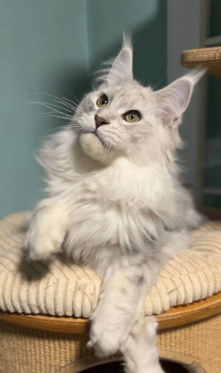 Meet Dariy—a heart-stealing blue silver shaded boy with enchanting green eyes, ready to fill your home with soft purrs and gentle cuddles. From the very first snuggle, his plush coat and quiet warmth will win your affection; his playful curiosity and composed manners hint at royal lineage in every paw-step.