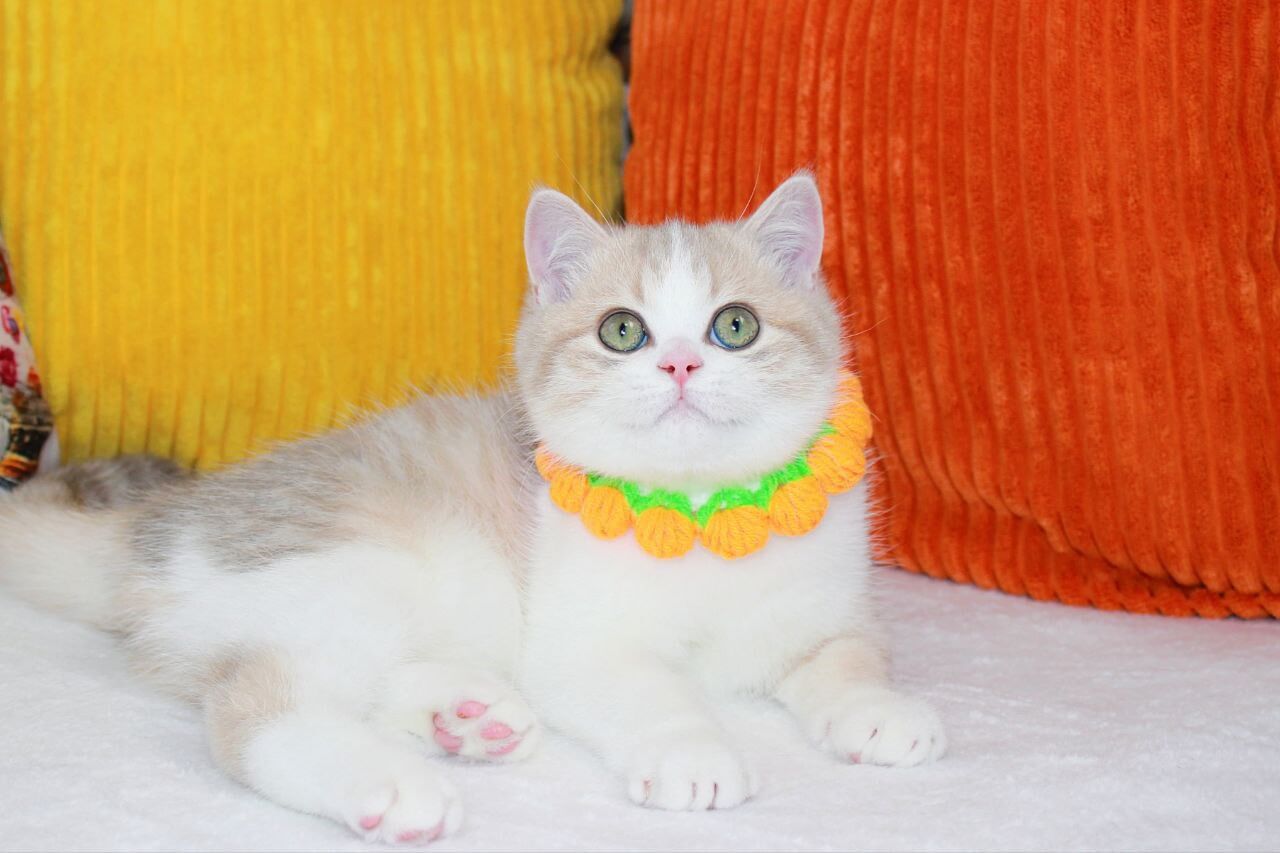 Dior’s sparkling temperament is matched by his striking good looks—his plush coat glows with golden cream tones, perfectly accented by snowy white and paired with show-stopping emerald eyes. Whether he’s chasing a sunbeam or softly kneading your hand, Dior’s affectionate charm is simply unforgettable.