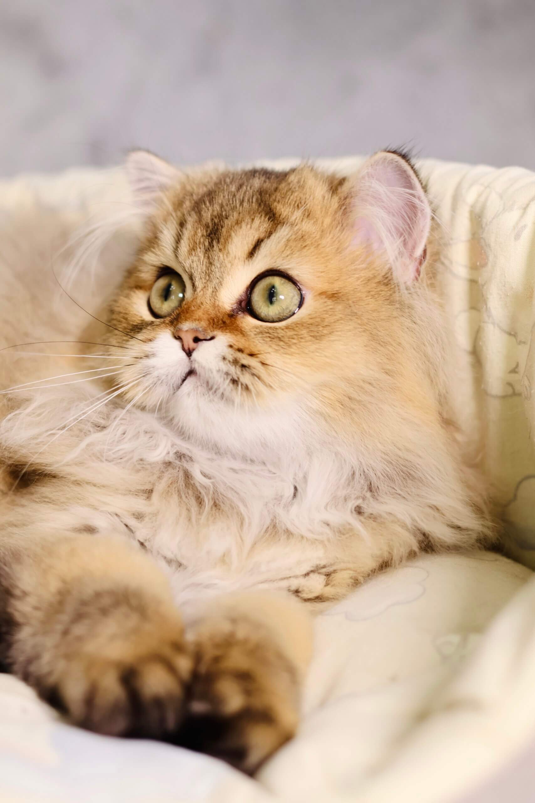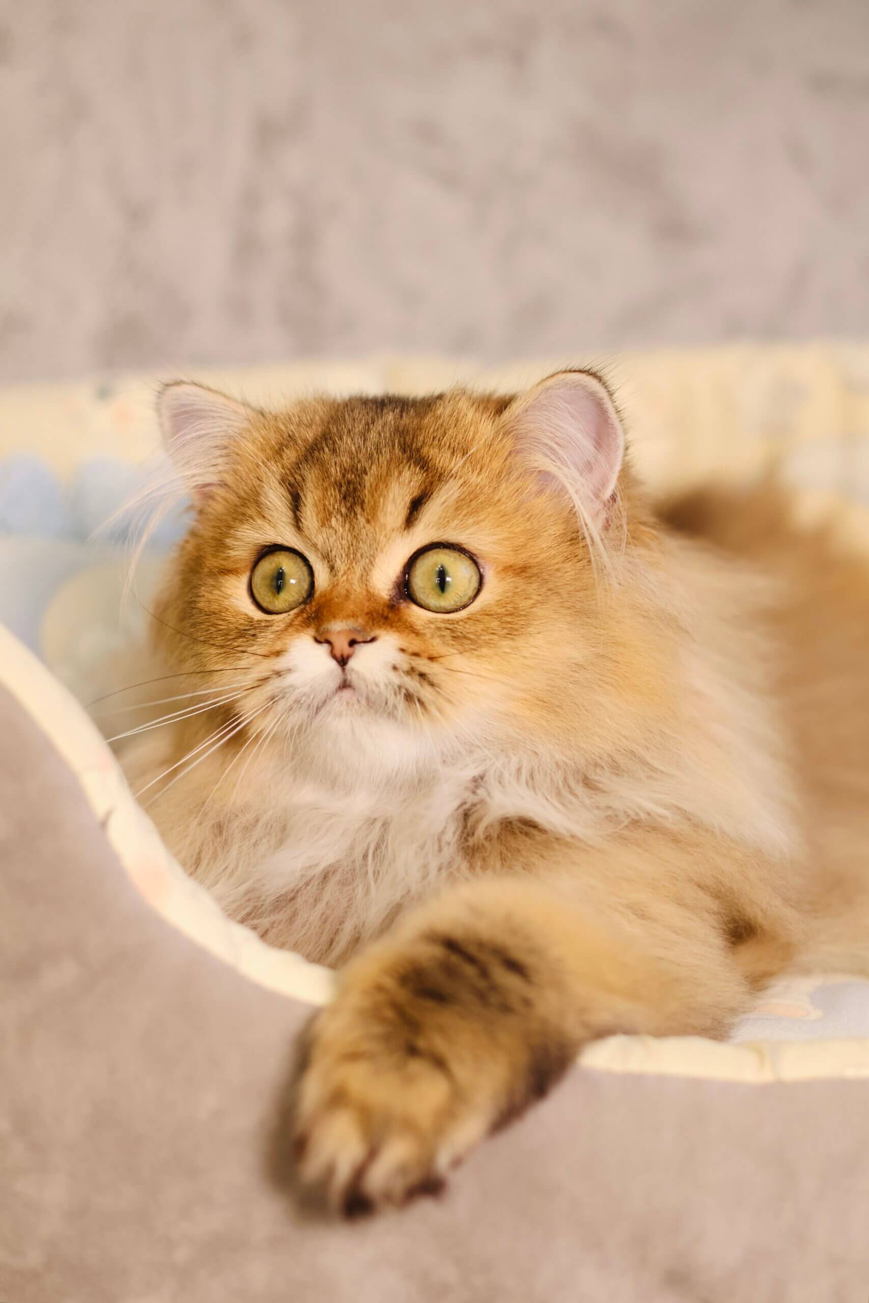 Meet Dior—a golden dream wrapped in the softest fur, waiting to capture your heart with every gentle blink of his striking green eyes. This Scottish Straight boy radiates warmth, affection, and a calm curiosity that will fill your home with cozy cuddles and gentle, melodic purrs.