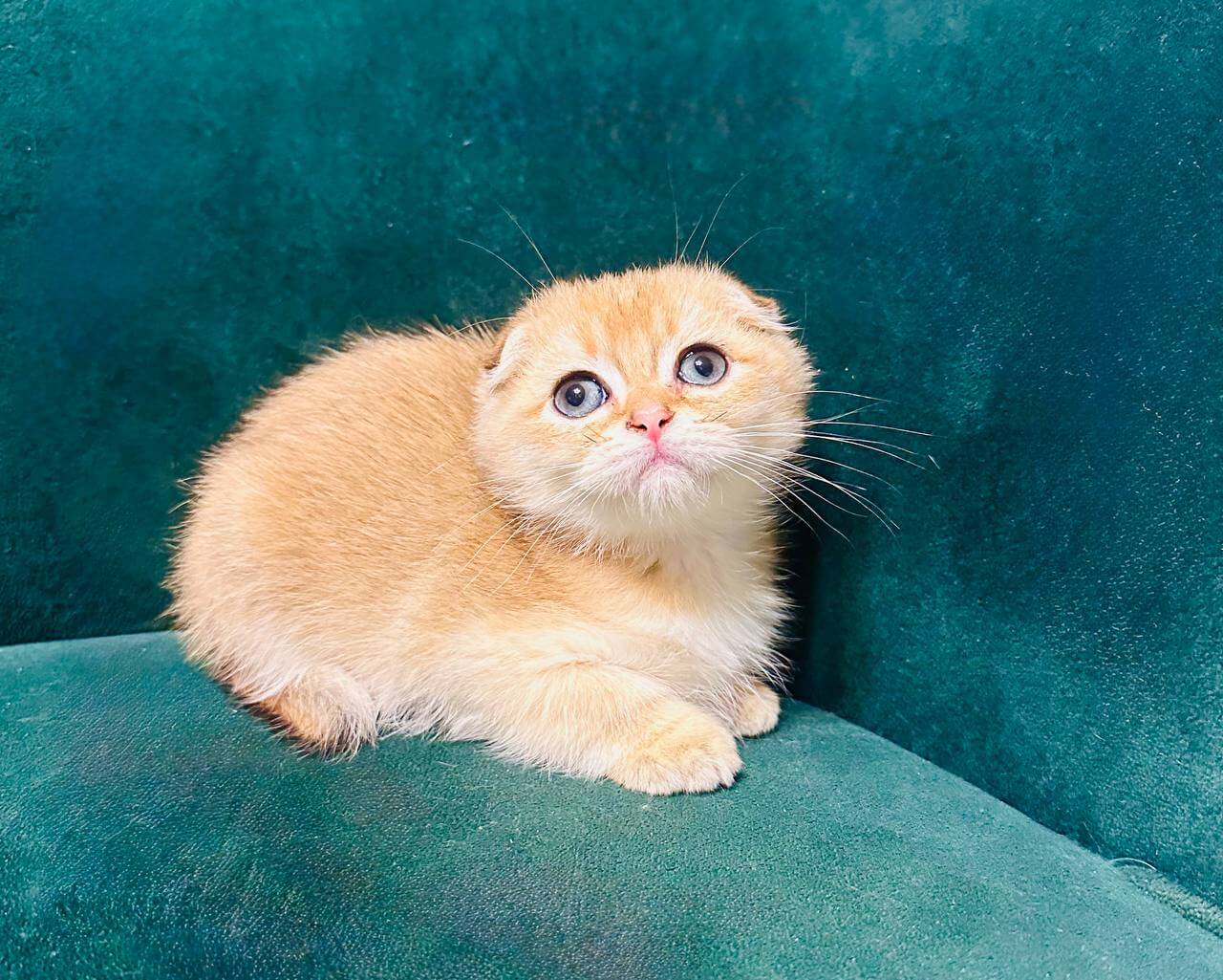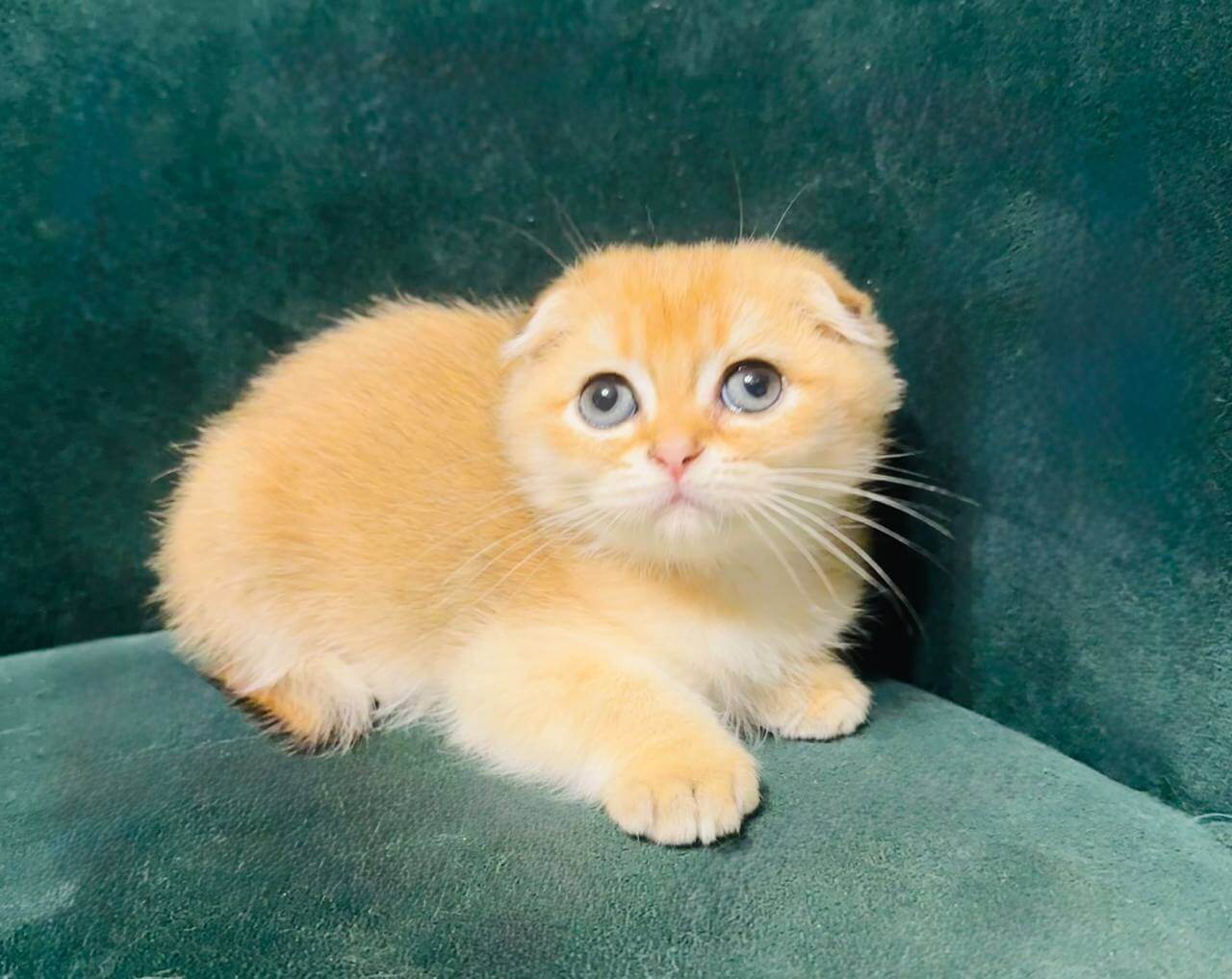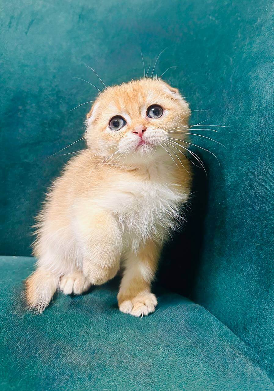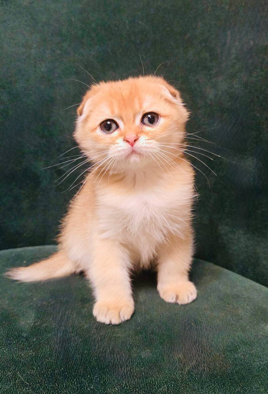 Donald is a purring bundle of happiness with the sweetest folded ears and a plush, cloud-like coat that loves to soak up your warmth. Playful, sensitive, and oh-so-easy to hold, Donald delights in cozy laps, gentle pets, and curious nose boops. His loving nature and calm, cuddly temperament make him the perfect companion for quiet snuggles or playful adventures.