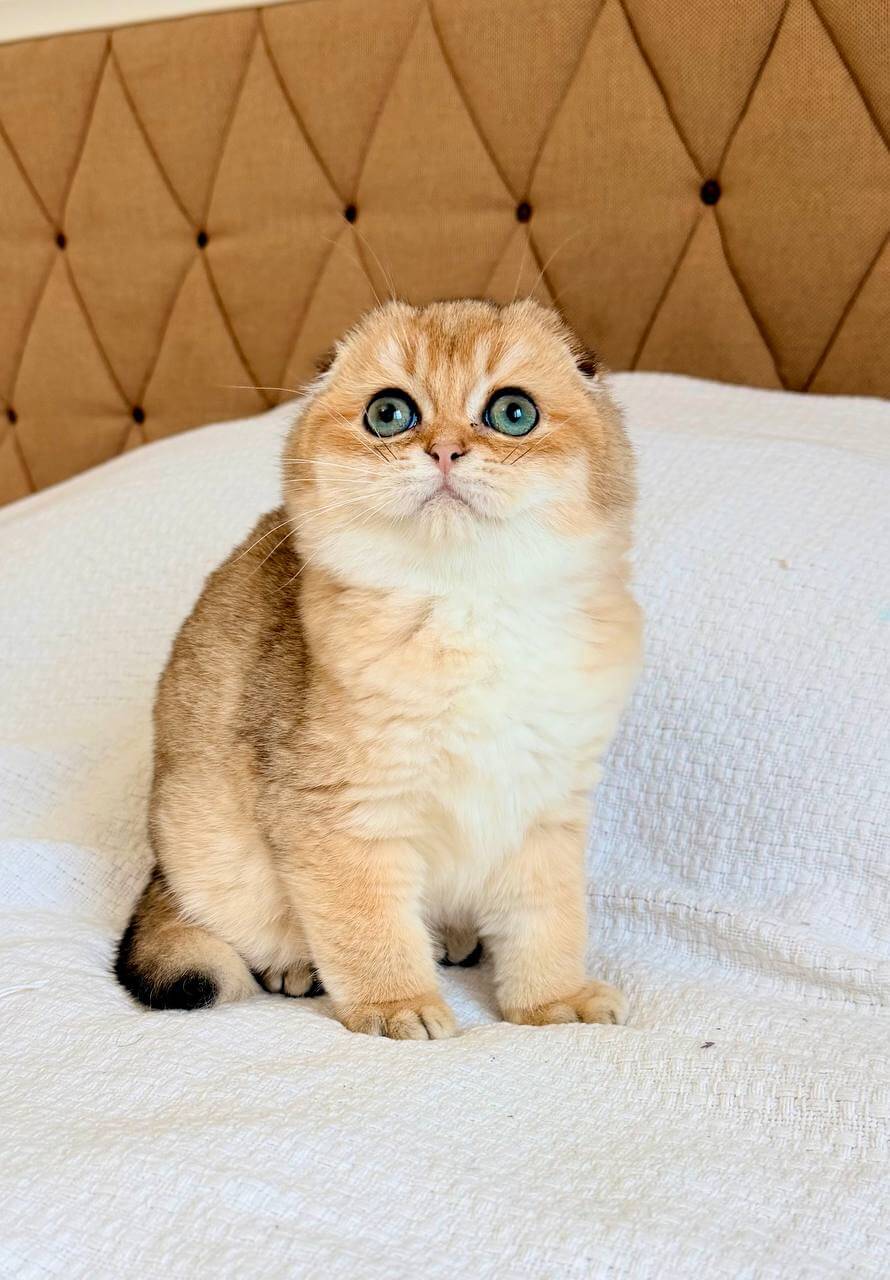 Meet Donald, a heart-stealing Scottish Fold boy who wears his soft black golden fur like the richest velvet and gazes up at you with glimmering emerald eyes—inviting you into a world of joy and gentle affection.