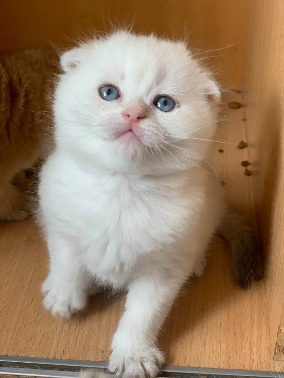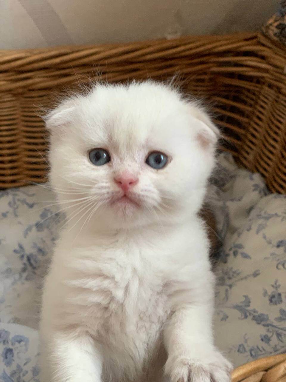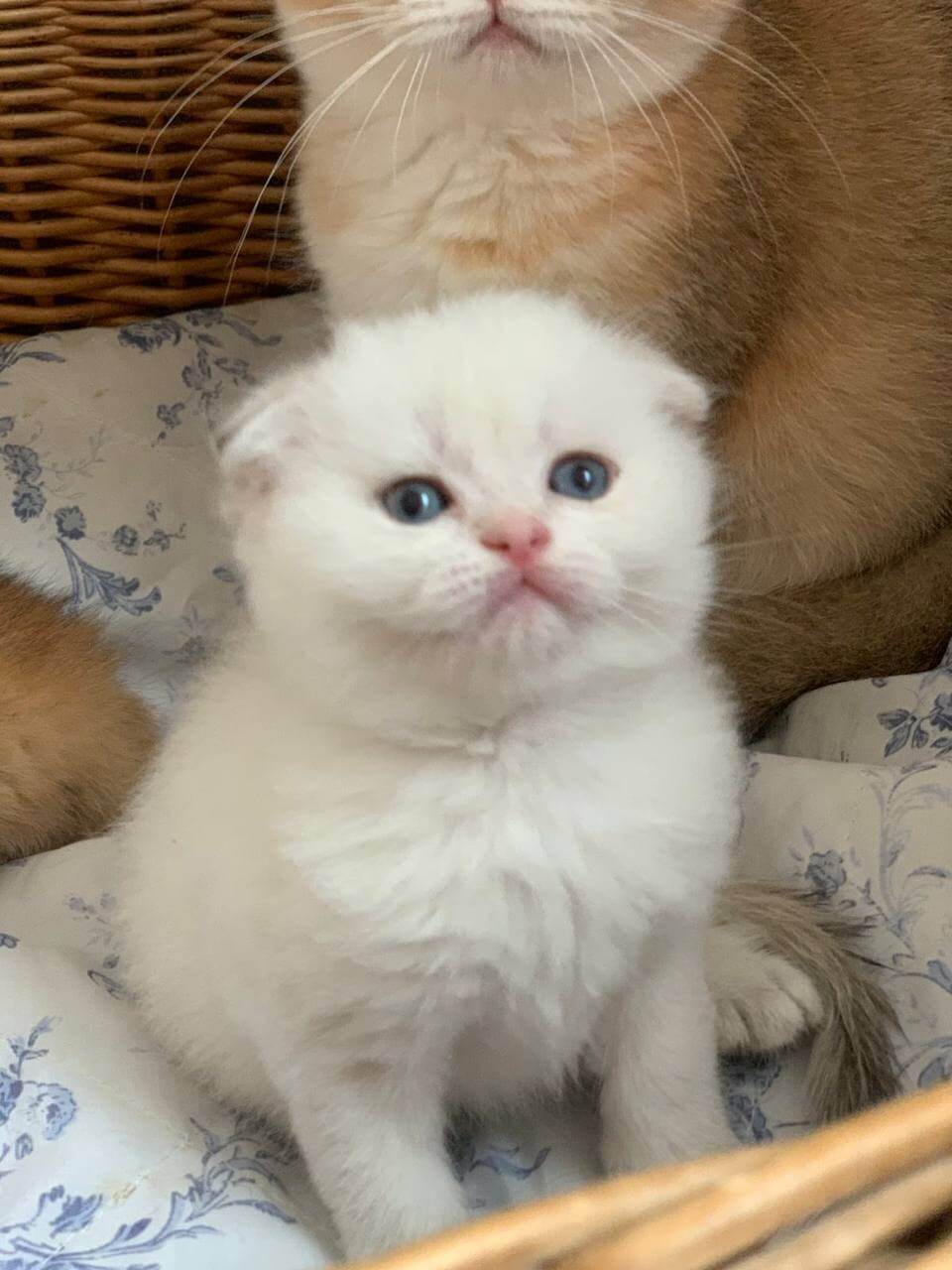 This show quality Scottish Fold brings confidence and legacy, backed by champion bloodlines and official WCF registration. Dorman comes fully socialized, well-adjusted to home life, and comfortable with both clumping litter and busy family rhythms. Each kitten is vet-checked, vaccinated, and prepared for a seamless transition, with daily support available for your questions, large or small.