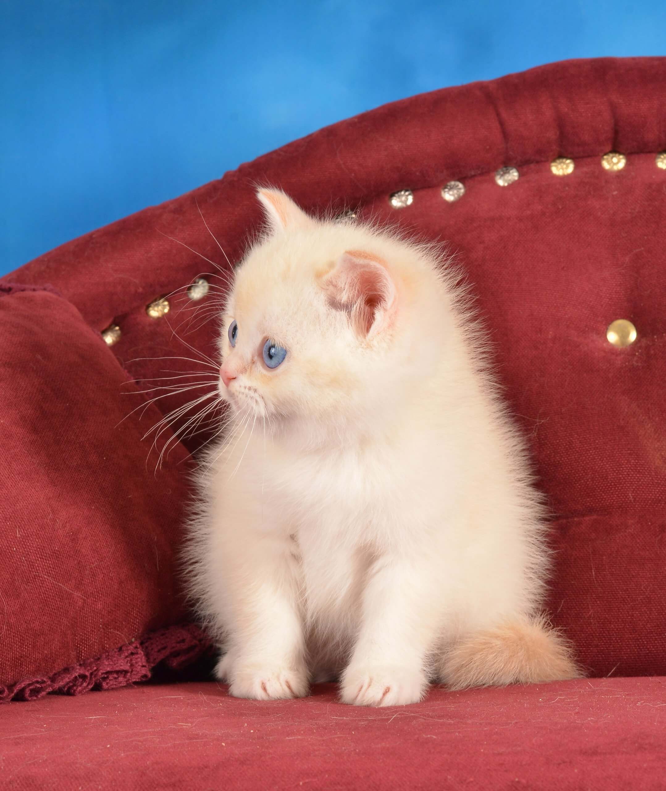Meet Ekler, a mesmerizing Red Tabby Point Scottish Straight kitten whose creamy, cashmere-soft coat and vivid blue eyes immediately captivate. Let Ekler curl up beside you—the delicate warmth of his fur, contrasted with the gentle coolness of his gaze, creates a physical presence that invites closeness. Every feature of this kitten radiates comfort and charm.
