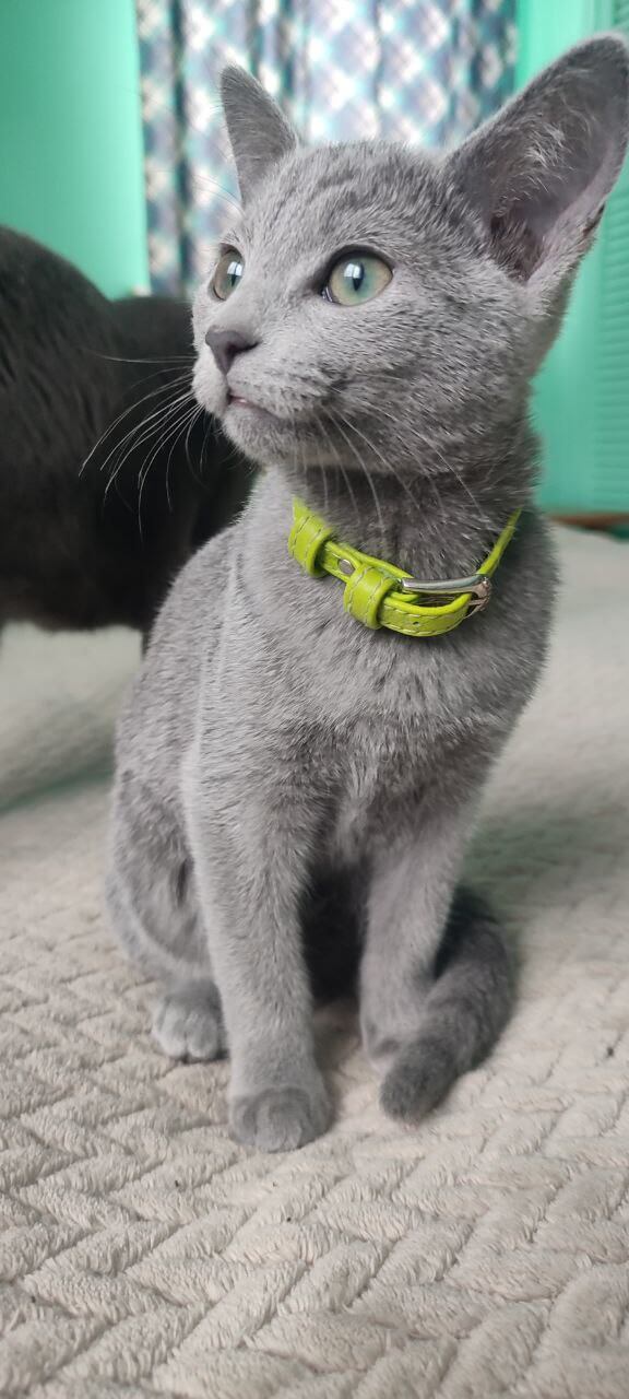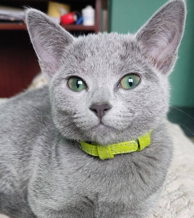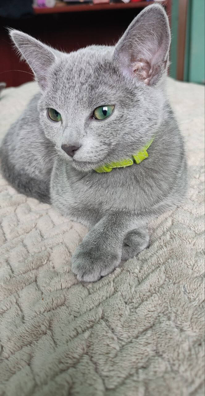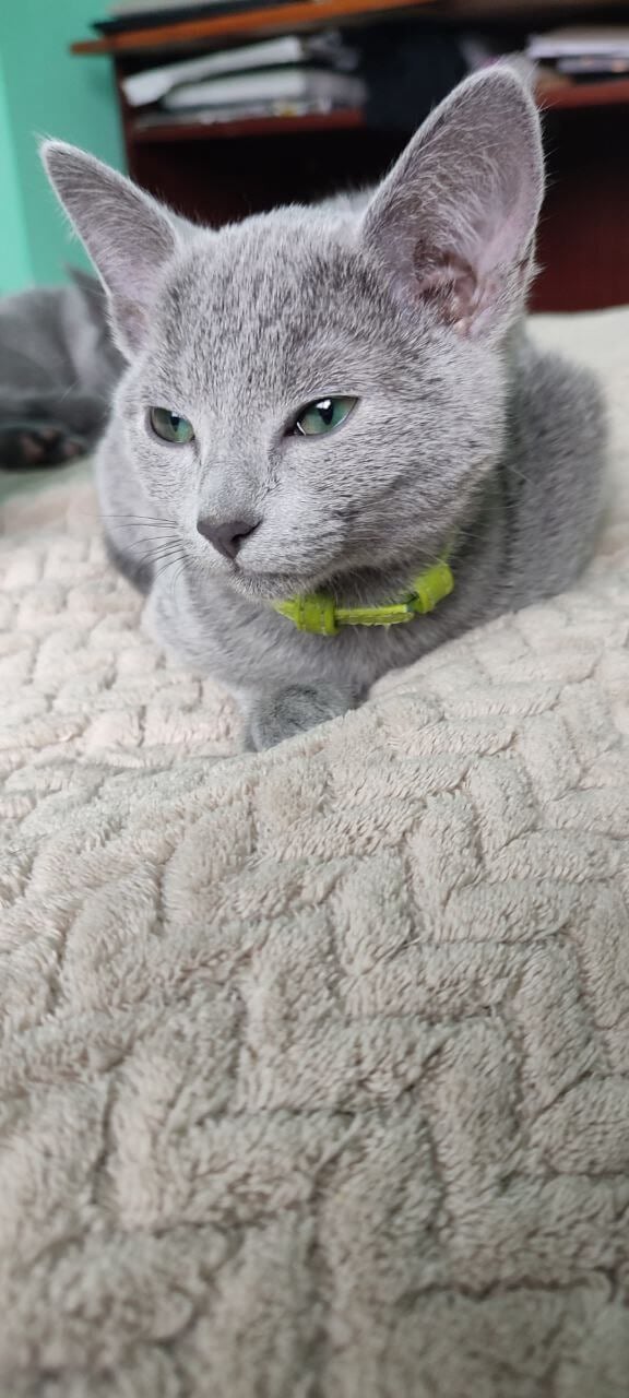 Elisa charms with a sweet, affectionate nature—she adores gentle cuddles, seeking out sunny nooks or your lap for heartfelt snuggles. Her elegant blue fur shines with each playful leap, while her enchanting green eyes follow you with intelligence and trust. Raised among loving hands, Elisa is beautifully socialized, tidy with her litter habits (wood pallets or clumping!), and always eager for gentle play or quiet companionship.