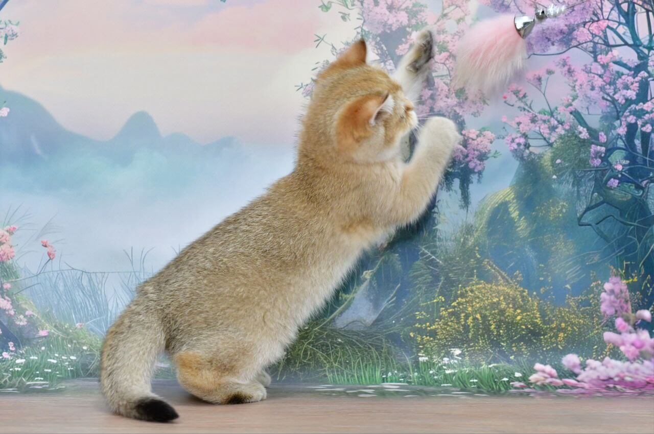 With her shimmering golden-black coat and enchanting gaze, Elli is a vision of grace and beauty. She’s as playful as she is affectionate — tumbling after feather toys one minute, curling up for soft, sleepy snuggles the next. Her sweetness and confidence shine through in every twinkle and cuddle.