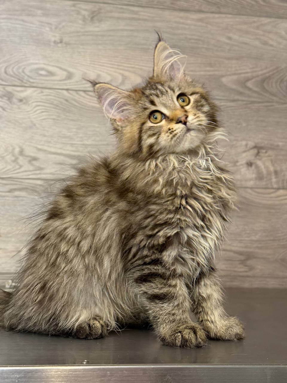 From the moment you meet Emma, her silky black tabby-spotted coat and glowing yellow eyes invite you into a world of soft purrs and snuggly warmth. This darling girl is pure Maine Coon magic – regal in her gentle gaze, playful in her featherlight steps, and always ready to curl into your arms for an evening cuddle.